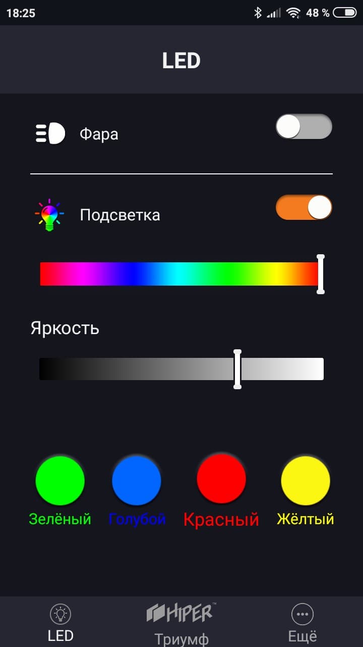 - яркая разноцветная подсветка, мощная фара, светодиодные стоп-сигналы