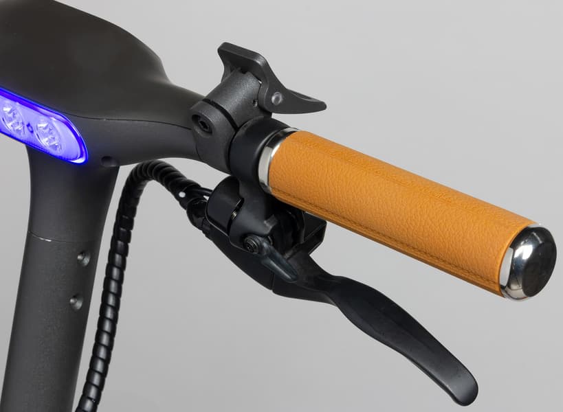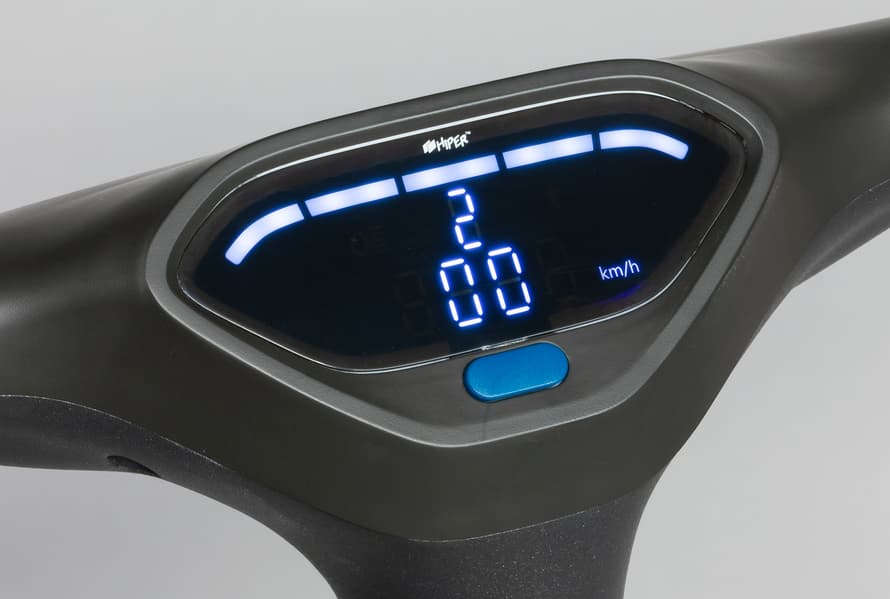 Руль, как и вся «рулевая колонка» самоката, выполнен из толстого алюминиевого сплава с напылением. Приборная панель сделана из пластика. На той его части, что обращена к водителю, расположены дисплей и кнопка управления. На дисплее можно видеть информацию о скорости передвижения, передаче, уровне заряда, подключении по Bluetooth и активности «фары».