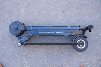 Вес самоката — 9,9 кг. Это небольшой показатель для электросамокатов, однако, к примеру, детям перевозить самокат в сложенном состоянии может быть тяжеловато.