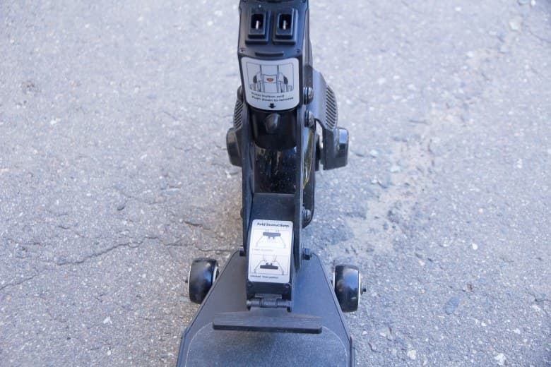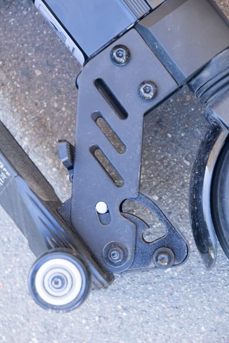 В передней части деки находятся два небольших колеса, использующихся при перемещении самоката в сложенном состоянии. Это значительно облегчает жизнь при транспортировке самоката, к примеру, в метро.