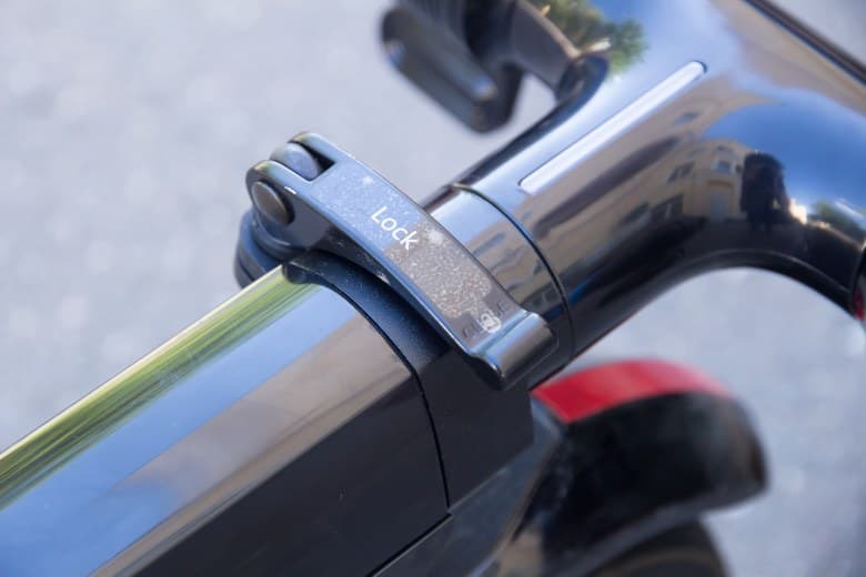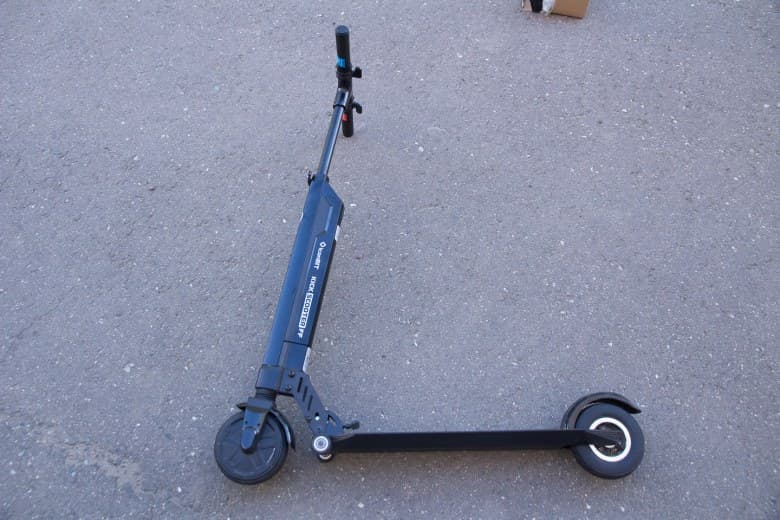 Приведение самоката в рабочее состояние не составляет особых сложностей. Необходимо нажать на педаль у сочленения самоката, поднять руль, опустить фиксатор руля, открыть эксцентрик, выставить необходимую высоту руля и закрыть эксцентрик. После данных манипуляций самокат, в целом, уже готов к использованию. Однако переднее мотор-колесо заметно подтормаживает без электричества — поездку с севшей батареей сложно назвать приятным занятием. Если предстоит забираться в горку — проще сложить самокат и везти его на колесиках, как чемодан.