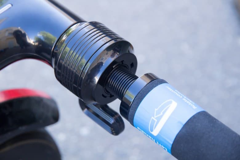 Ручки самоката накручиваются на резьбу, что, в отличие от классического соединения, исключает люфт ручек и делает управление самокатом более комфортным. Направление вращения указано на рукоятках.