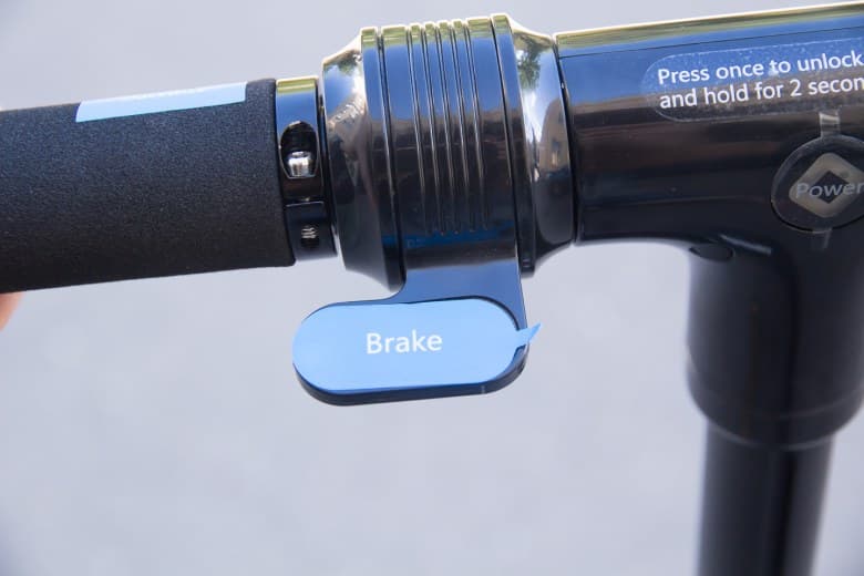 Электронный тормоз работает достаточно плавно, сила торможения зависит от степени нажатия ручки тормоза. При всем желании тормозом нельзя моментально остановить самокат, что удлиняет тормозной путь, но предотвращает возникновение аварийных ситуаций, связанных с торможением. Технология рекуперативного торможения (EBS) позволяет подзаряжать аккумулятор при использовании электронного тормоза, однако, по нашим наблюдениям, больше 5% заряда аккумулятора восстановить не получится. Для экстренного торможения придется использовать задний механический тормоз вместе с передним электронным.