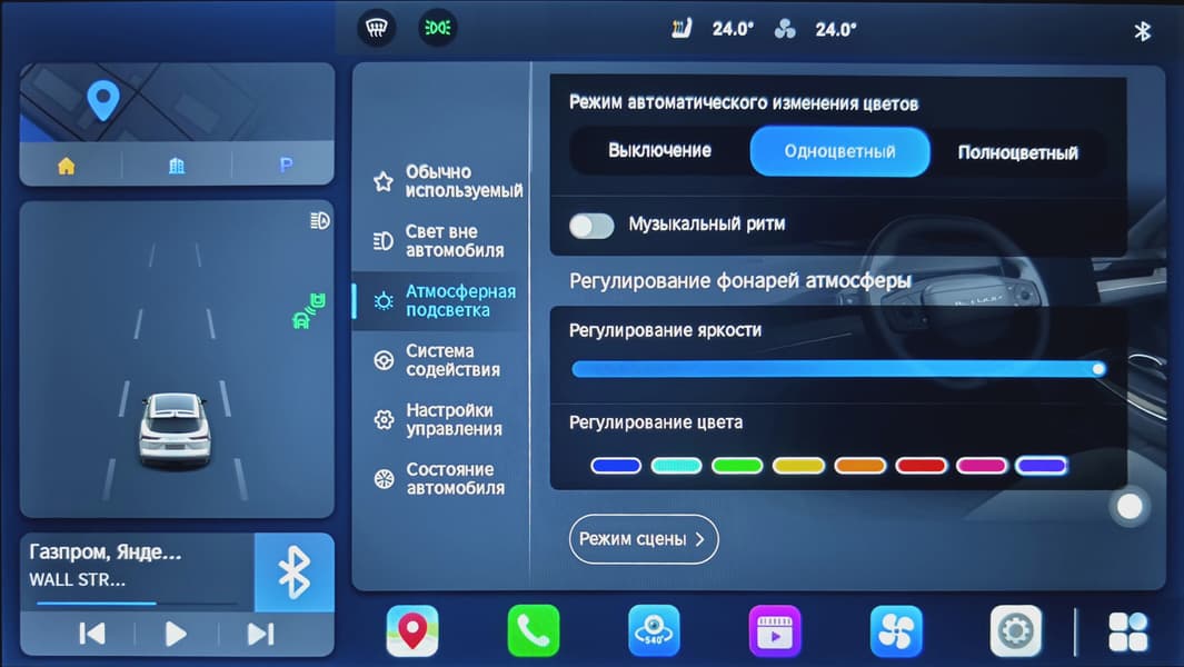 Выглядит это интересно и настраивается под себя (в отличие, например, от BMW, которые пытаются большее количество цветов и оттенков продать в более богатых комплектациях или дать доступ в более продвинутых прошивках).
