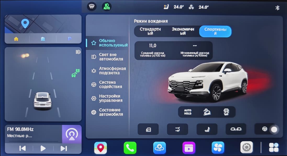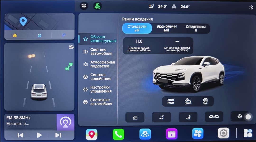 Автомобиль на экране можно сделать полностью прозрачным, есть множество режимов и дополнительных настроек.