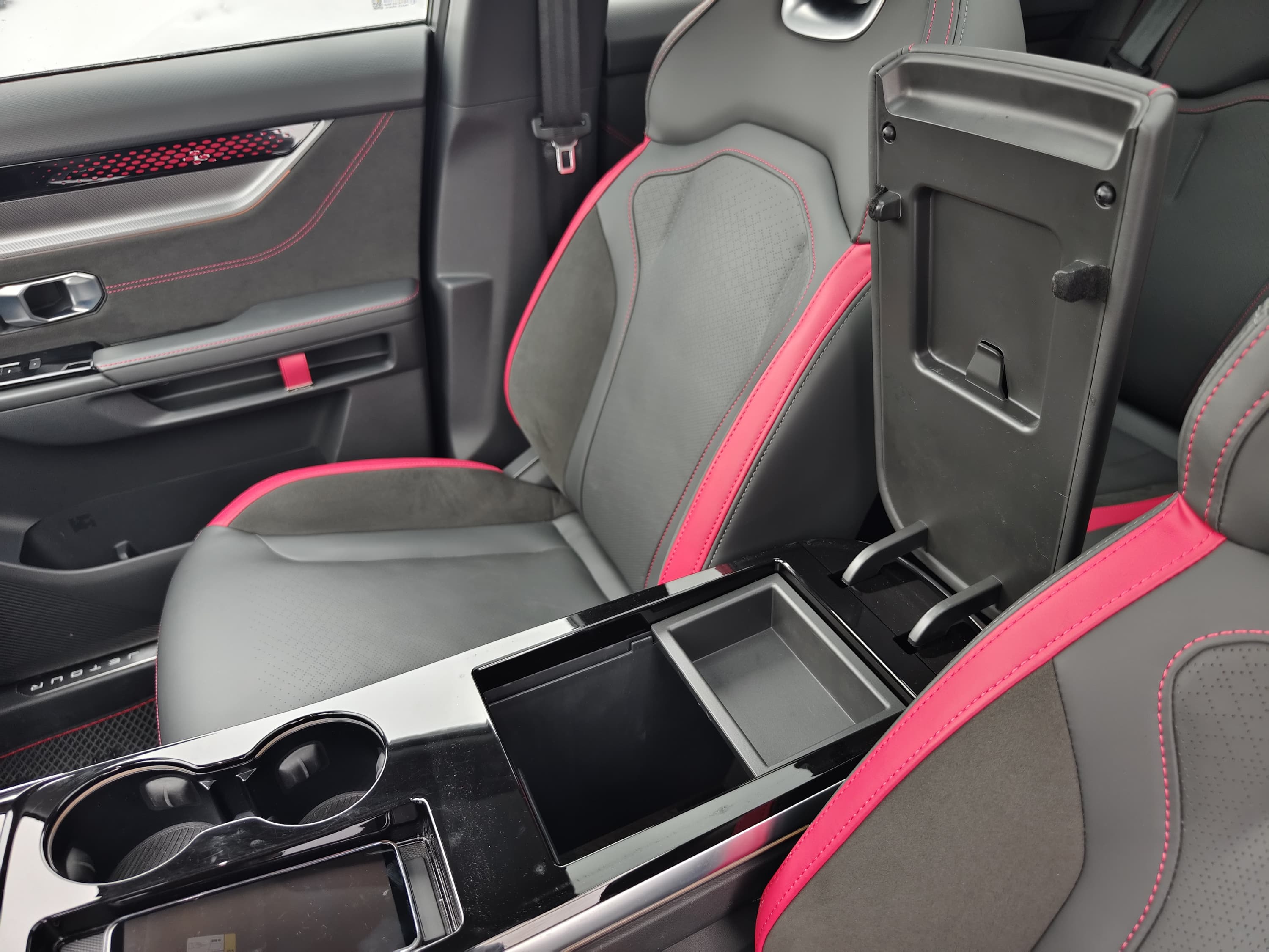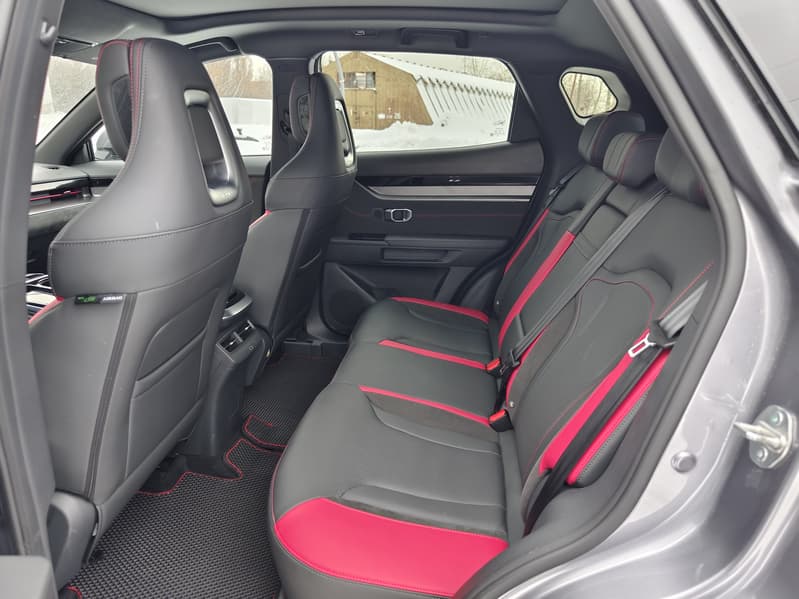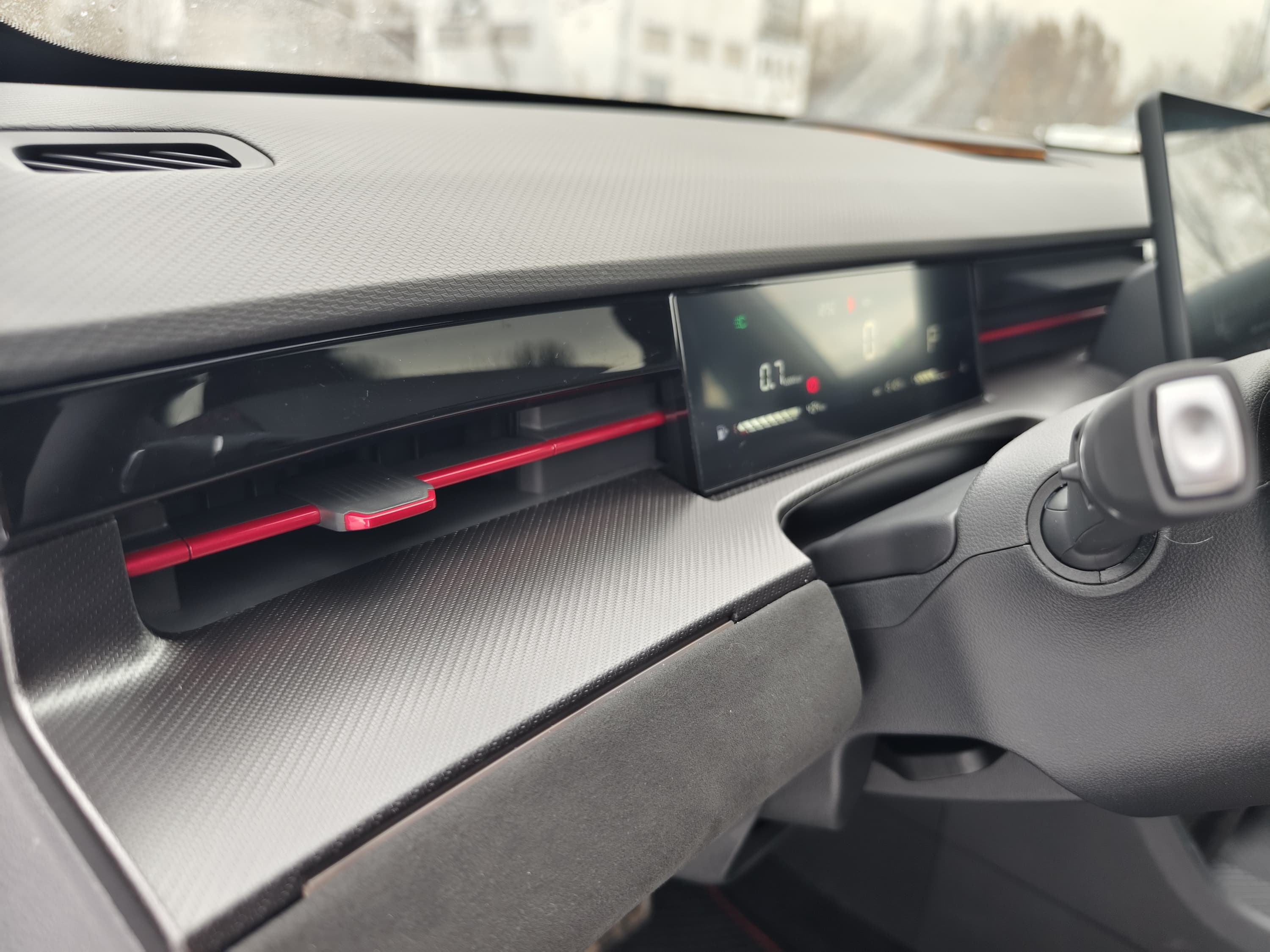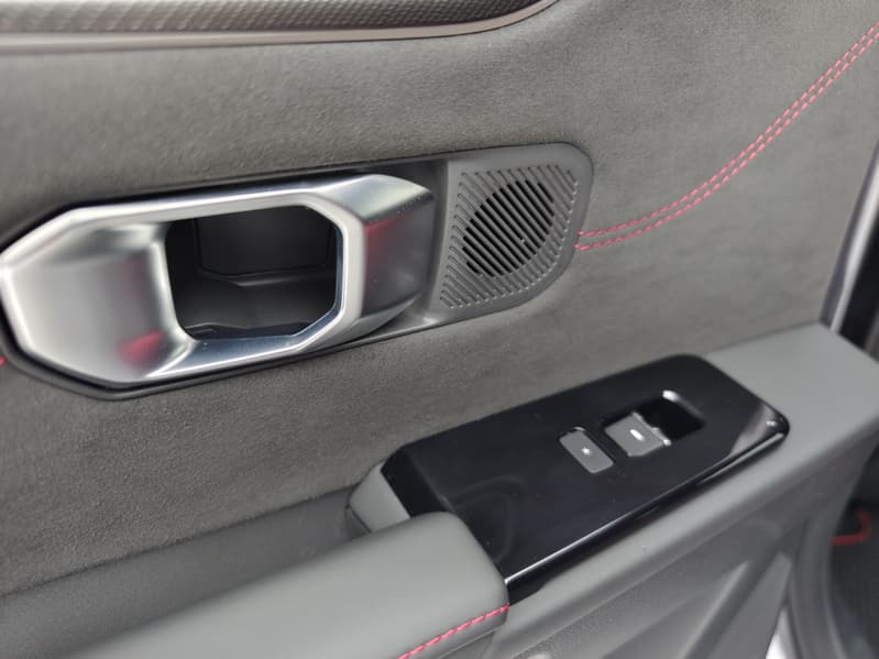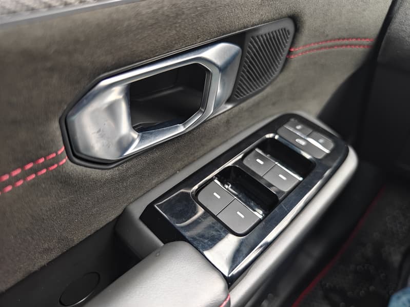 Отделка дверных карт добротная, в максимальной комплектации, как была у нас на тестировании, есть вставки из алькантары, линии подсветки и небольшие экраны, отображающие температуру за бортом и уровень загрязнения твердых частиц PM 2.5.