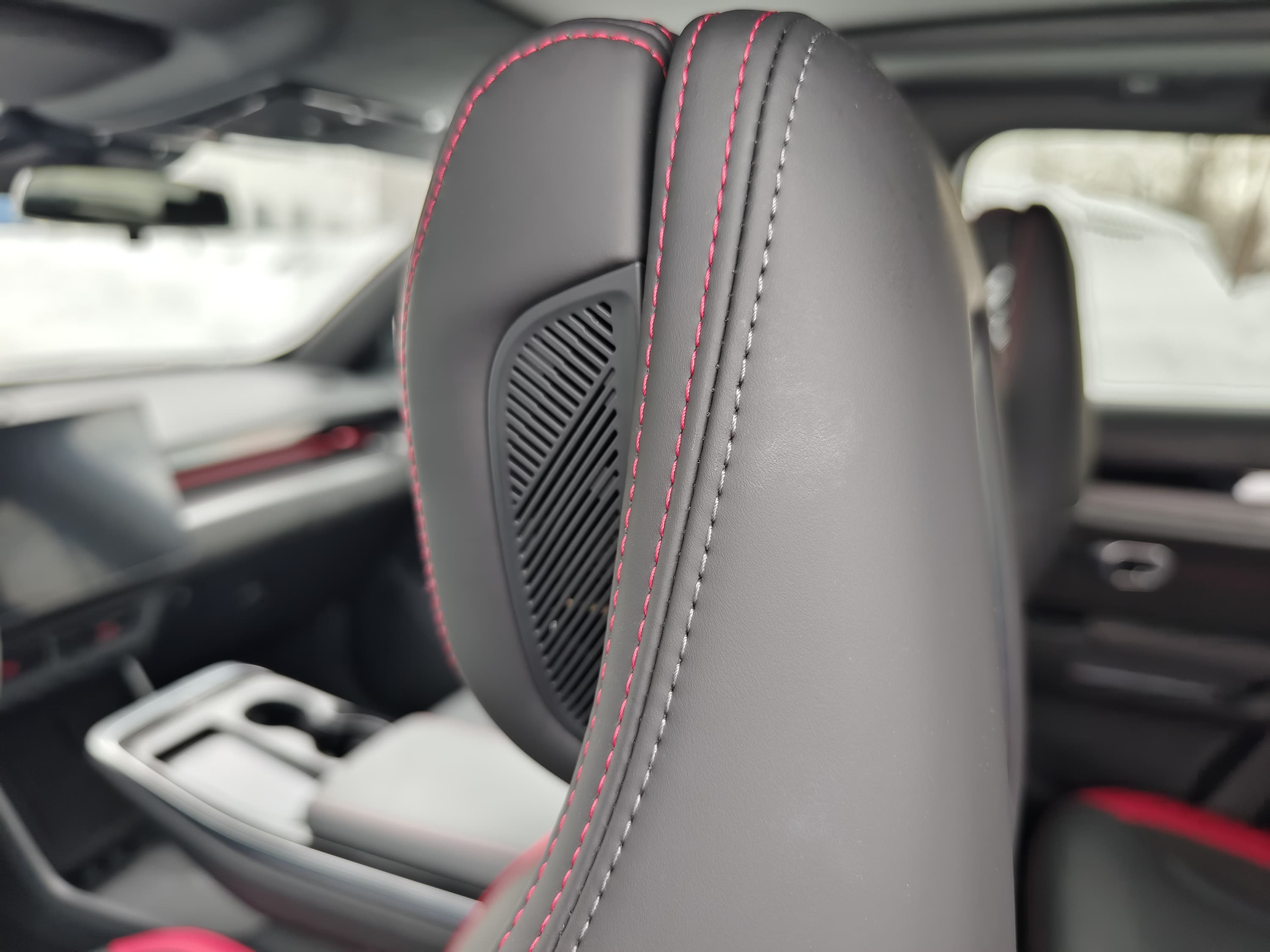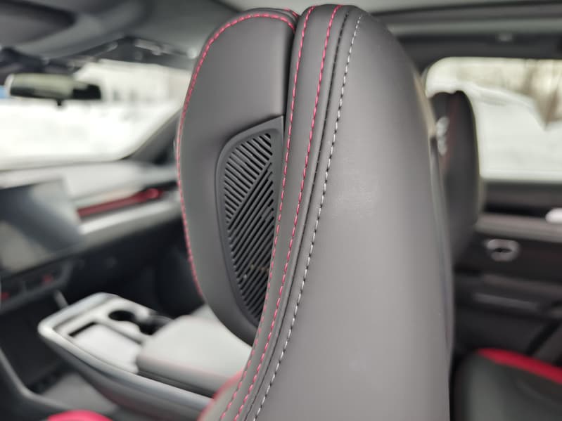 А вот интегрированные акустические колонки в подголовник, на наш взгляд, лишены смысла. Качество звука низкое и плоское. Более того, не совсем понятен сценарий, когда они могли бы пригодиться. Разве что если на дальних дистанциях, когда пассажиры спят, включить воспроизведение музыки или аудио-книги через эти динамики, чтобы не шуметь на весь салон.