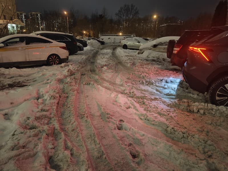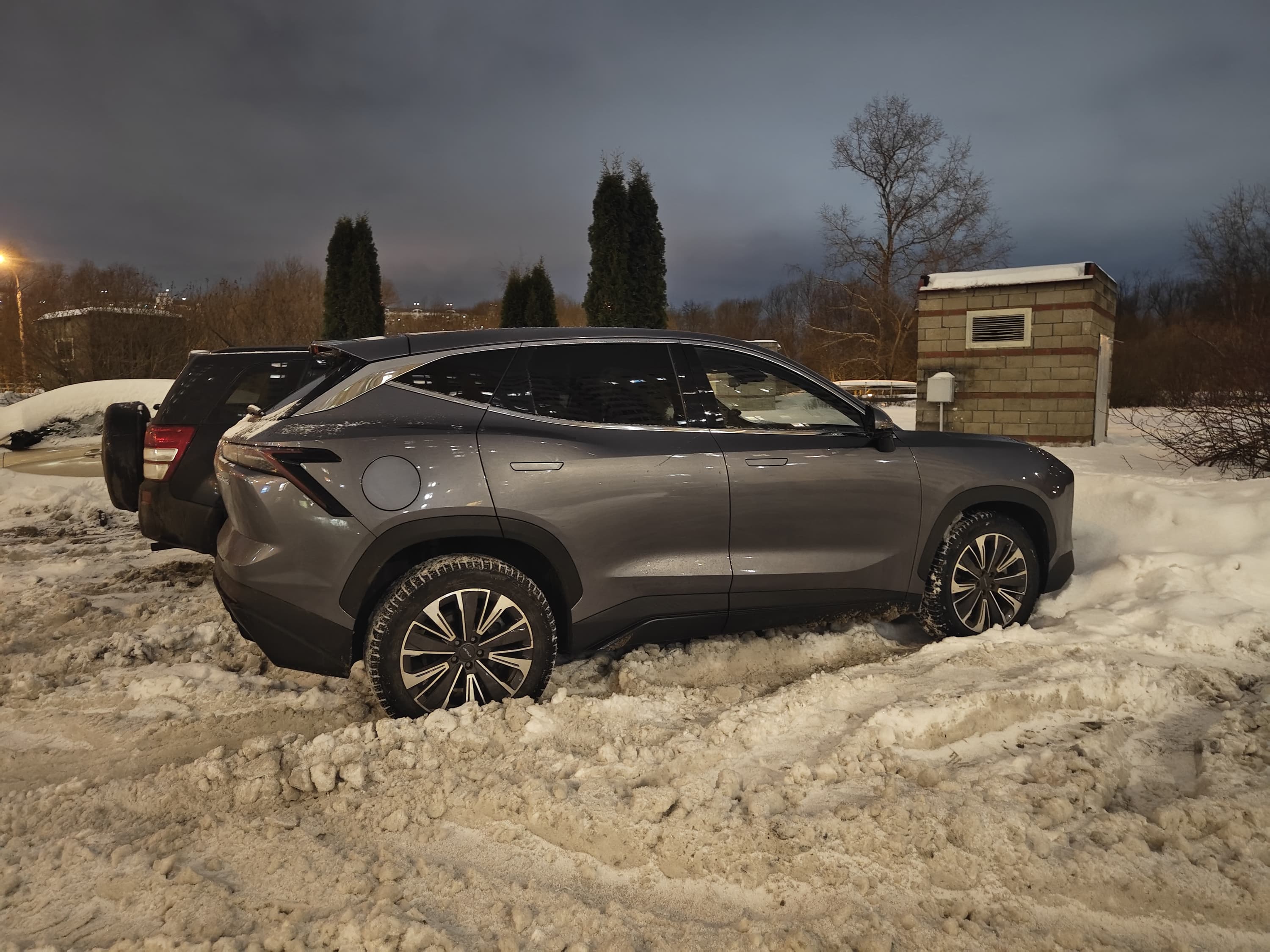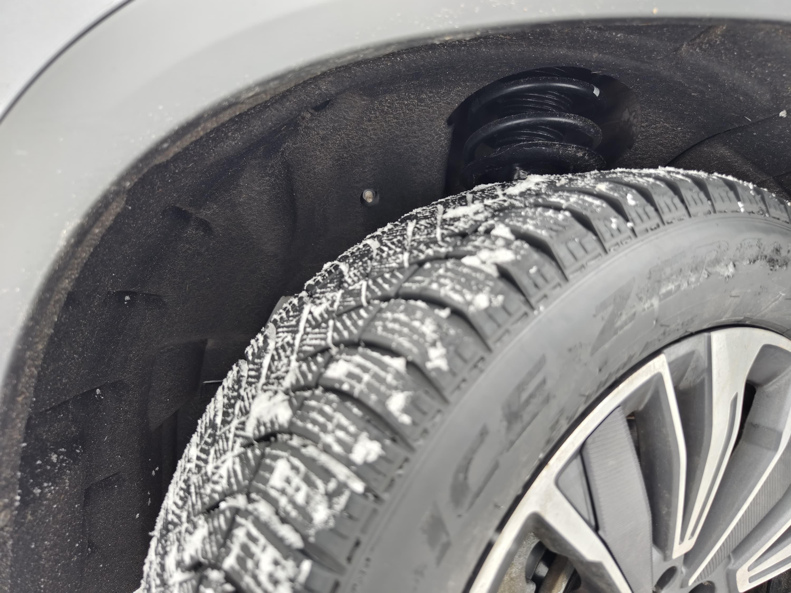 Тут следует учесть, что на автомобиль была надета хоть и качественная зимняя шина российского производства Pirelli Ice Zero 235/55 девятнадцатого диаметра, но всё же нешипованная. Есть мнение, что «липучка» в зимней каше ведёт себя лучше «шиповки», но, всё же, когда после слоя снега шина докапывается до льда, наличие шипов могло бы улучишь «зацеп» с поверхностью.