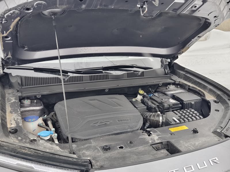 Механическая опора расположена не слишком удачно: прямо над двигателем. В ходе теста погода достаточно морозная, но во время открывания капота, чтобы долить жидкость стеклоочистителя, и установки «кочерги» можно было обжечься.
