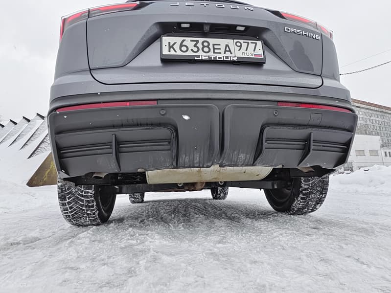 Проходимость у Jetour условна. Существование безальтернативного варианта только переднего привода само по себе задаёт определённые рамки для амбиций в покорении сложных маршрутов. К этому добавим, что под изящно скроенным фартуком моторного отсека модели Dashing мы обнаружили клиренс всего в 160-170 мм. Это уже само по себе накладывает ограничения к перемещению по бездорожью, но есть и другой нюанс. Вдоль колёсной базы Jetour замечены выступающие элементы выпускного тракта, надежно не защищённые от внешнего воздействия, что делает их уязвимыми даже перед не особо агрессивным рельефом. Таким образом, поклонникам внедорожных приключений следует оценить все риски, прежде чем отправиться на преодоление препятствий на этом автомобиле.