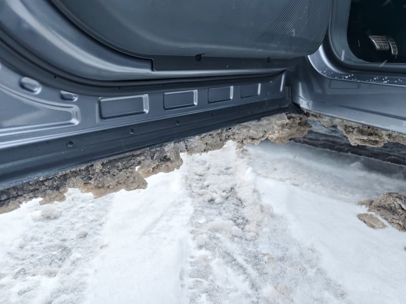 Более того, подобный дизайнерский ход в отношение дверей ведёт к большему налипанию снега на нижнюю часть, чем это могло бы быть, если бы защитная пластиковая часть была конструктивно отделена от дверей.