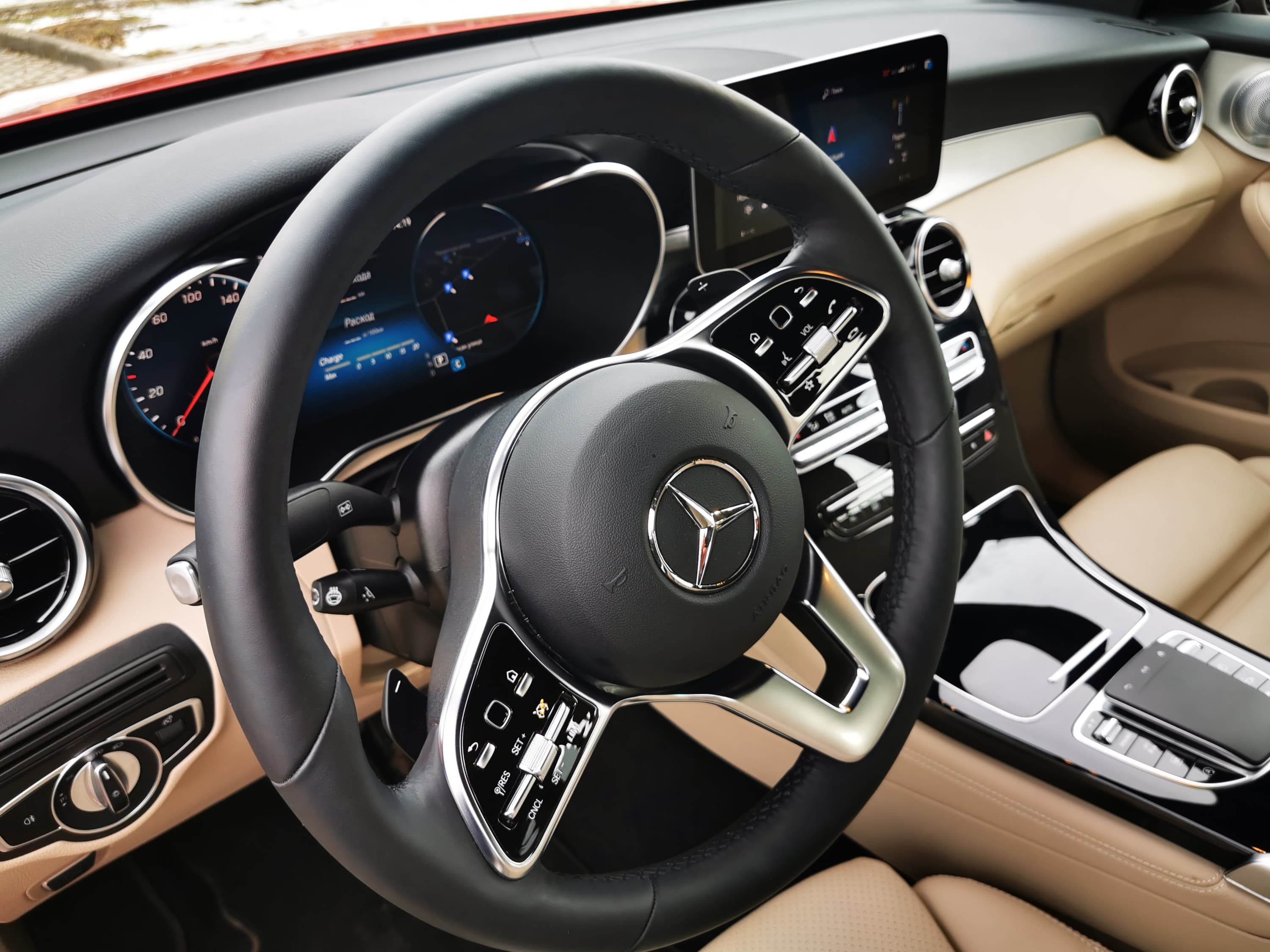 Можно давать и вполне конкретные команды: включить обогреваемые сиденья, найти другую радиостанцию или спросить о погоде на какую-то более отдаленную дату. Голосовая функция аналогична уже известным в мире Amazon Alexa, Apple Siri или Google Assistant. Но либо мы с GLC Coupe мало общались, либо мы ожидали большего, имея богатый опыт общения с той же Алисой или Ассистентом Гугл. Особенно это касается ложных срабатываний на слово «Мерседес». Голосовой помощник включается сразу, как слышит свое «имя». В итоге обсуждать что-либо про «Мерседесы» в машине стало невозможно, и голосовой помощник был безжалостно отключен в настройках. Хотя, возможно, более длительное обучение автомобиля снизило бы количество ложных срабатываний.