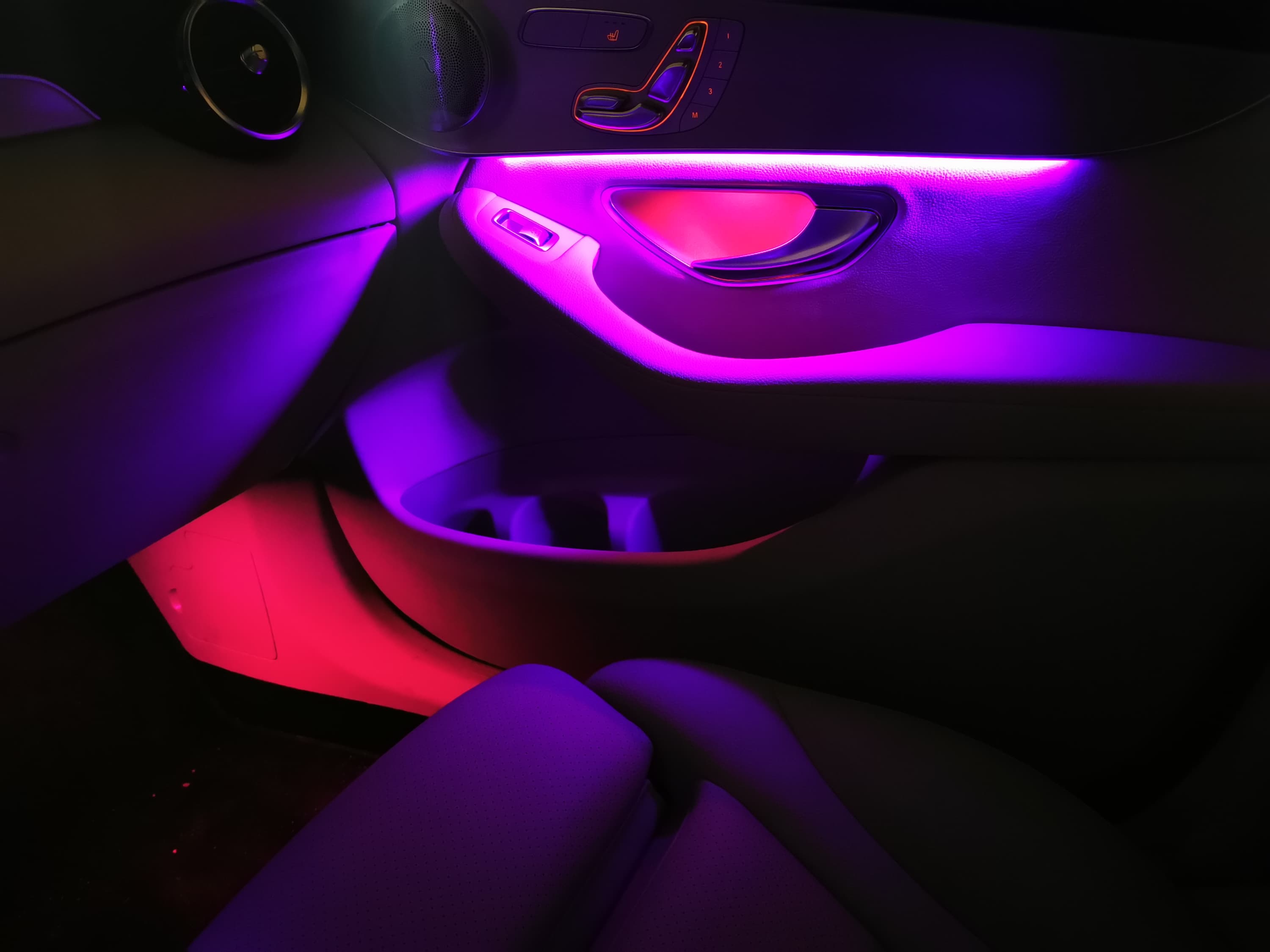 Ambient lighting — одна из любимых опций у многих пользователей Mercedes, позволяющая создать красивую обволакивающую подсветку салона в одном из 64 доступных цветов.