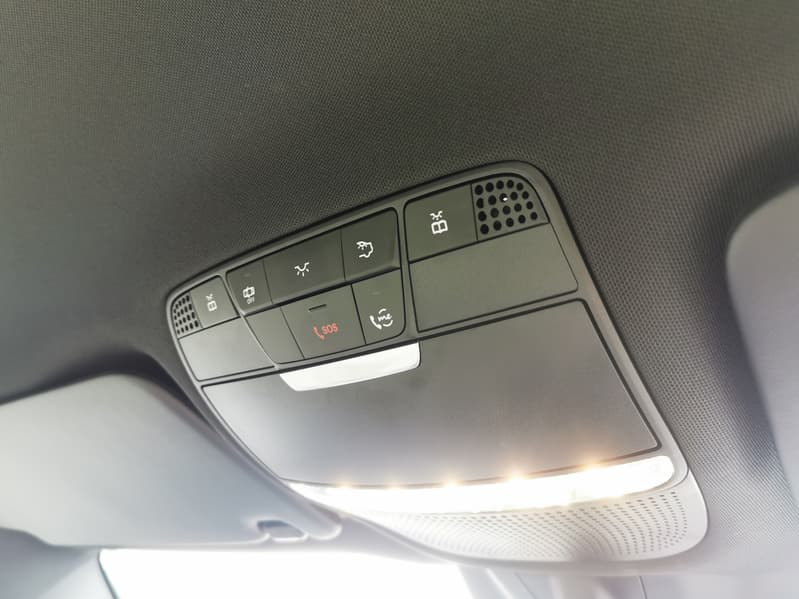 Микрофоны расположены и над водителем, и над пассажиром. Даже очечник в потолке присутствует по умолчанию, хотя во многих машинах он по какой-то странной причине часто устанавливается как опция вместо/на месте наддверной ручки.