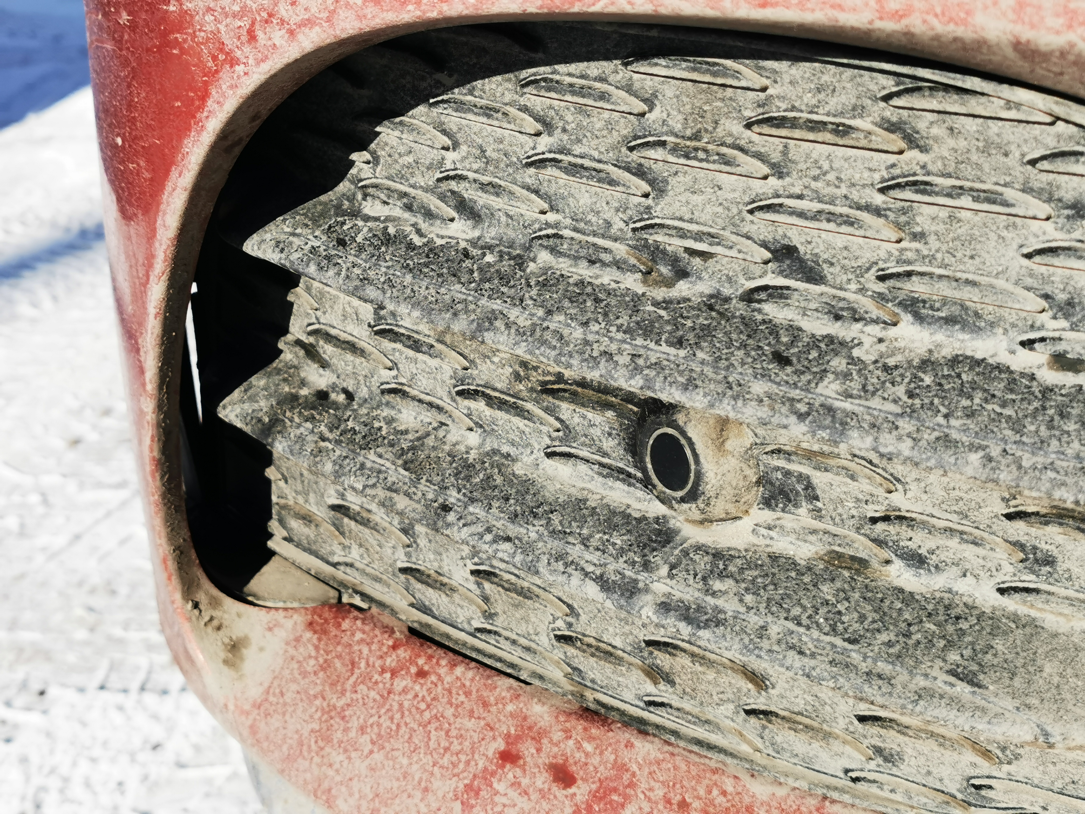 Через какое-то время движения по трассе датчик и вовсе начал звенеть не переставая. Визуальный осмотр на ближайшей АЗС выявил налипание небольшого количества снега на переднем бампере и решетке радиатора, поэтому было принято решение вовсе отключить парктроник до прибытия на место. Благо кнопка принудительного отключения ассистента при парковке в автомобиле присутствует.