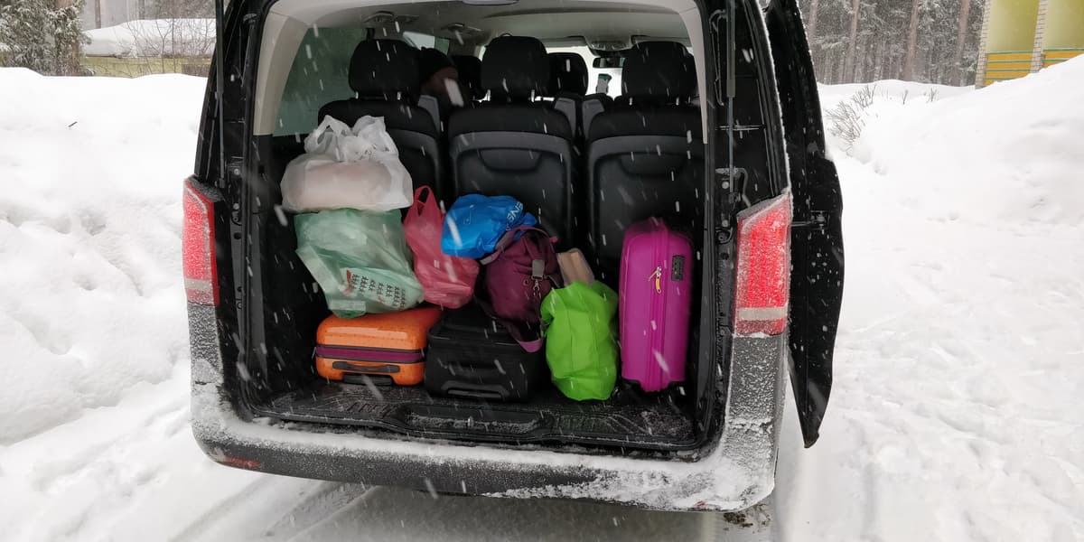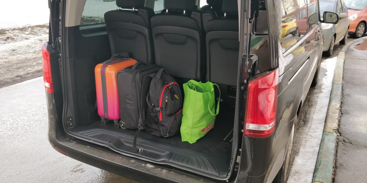 В пятницу в середине дня был дан старт нашему автопутешествию. Дети с комфортом устроились на третьем ряду сидений, взрослые пассажиры разместились на втором ряду. Багаж уместился полностью, но, если бы путешествие было более долгим, а багажа было бы больше, или же, сам микроавтобус был заполнен всеми пассажирами со своей небольшой поклажей, то пришлось бы третий ряд сидений сдвигать вглубь салона, чтобы увеличить багажное отделение.