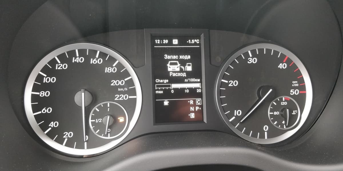 Щиток приборов очень напоминает тот, что устанавливался в некоторых автомобилях предыдущего поколения, например Mercedes-Benz B-класса в кузове W246.