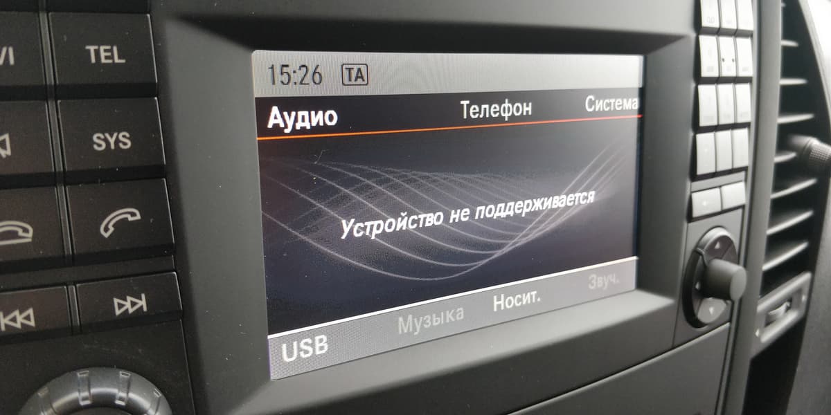 Мультимедийная система примитивна, и хотя позволяет считывать аудиотреки с внешнего USB-накопителя, но не с каждого. Используемый скоростной USB-накопитель стандарта 3.0 объемом 16 ГБ мультимедийная система не распознала, стабильная работа обеспечивается только с менее емкими флэшками USB 2.0.