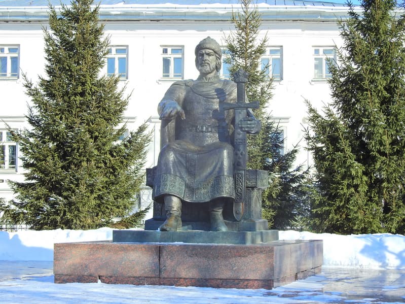 Там же неподалеку уже полтора века стоит памятник костромичу Ивану Сусанину. Простой деревенский мужик, прославившийся силой духа и любовью к Отчизне, живший в далекой костромской глубинке — умер от рук врага, спасая жизнь царю.