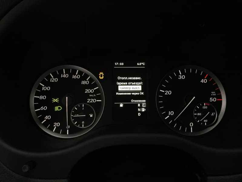 Стоит отметить, что в качестве опции можно доукомплектовать автомобиль полноценным большим экраном, который встраивается на самом верху консоли, а под ним располагаются все остальные элементы. В текущей же простой комплектации на консоли можно найти россыпь механических кнопок, а перед водителем — стандартную мерседесовскую аналоговую панель.