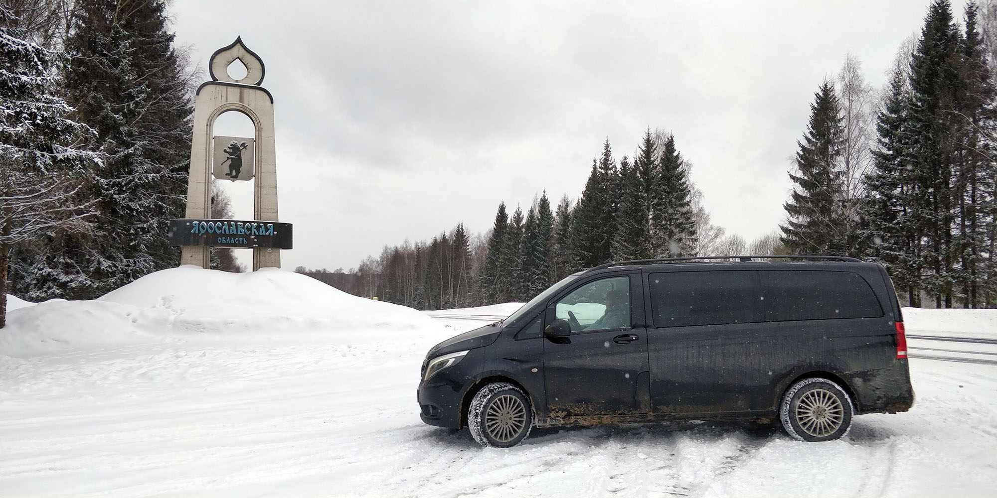 Две ночи нам предстояло провести в пансионате «Сосновый бор», добраться до которого можно по неасфальтированной грунтовой дороге. Зима решила дать последний бой и снега к тому моменту выпало уже немало. Тут как нельзя кстати оказался постоянный полный привод, которым был оснащен тестируемый Vito.