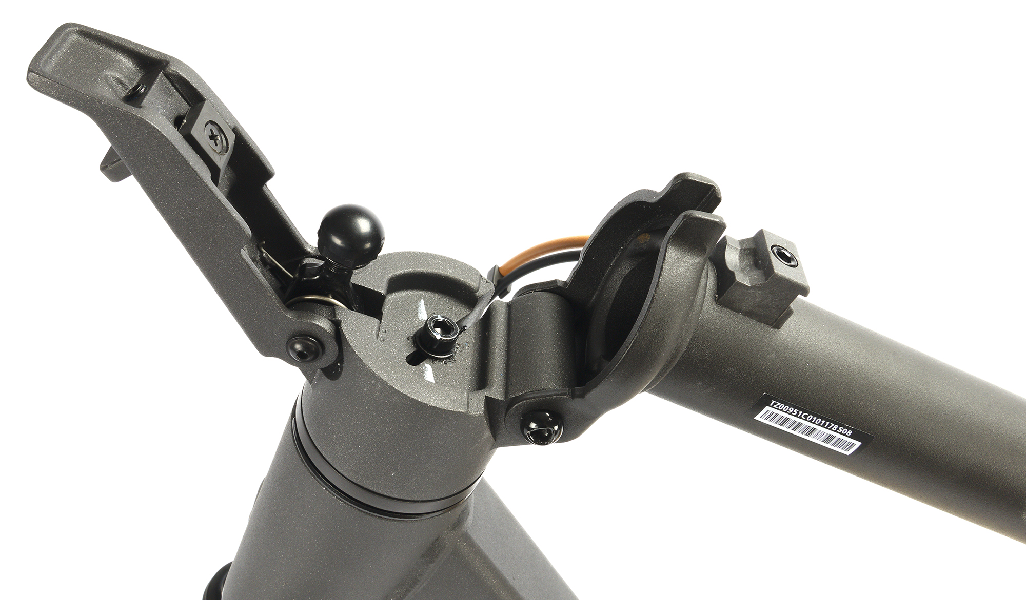 Механизм фиксации стойки традиционен, надежен и прост: достаточно разложить ее до щелчка и поднять до упора рычаг эксцентрика.