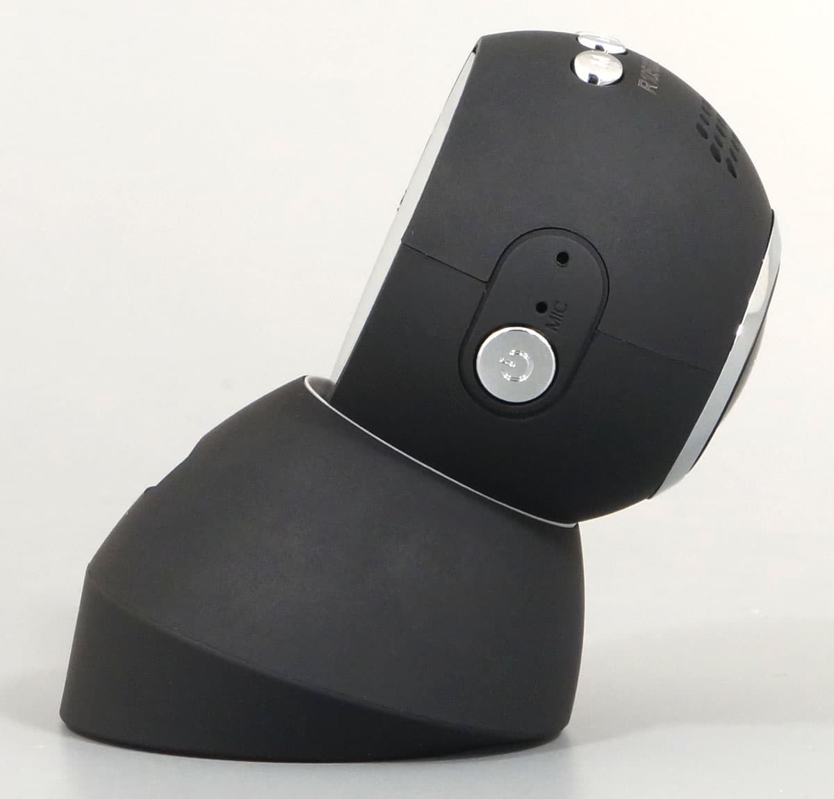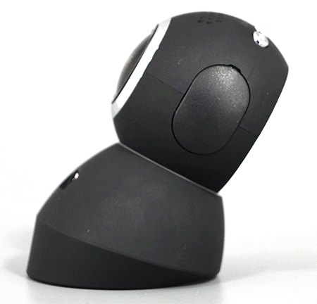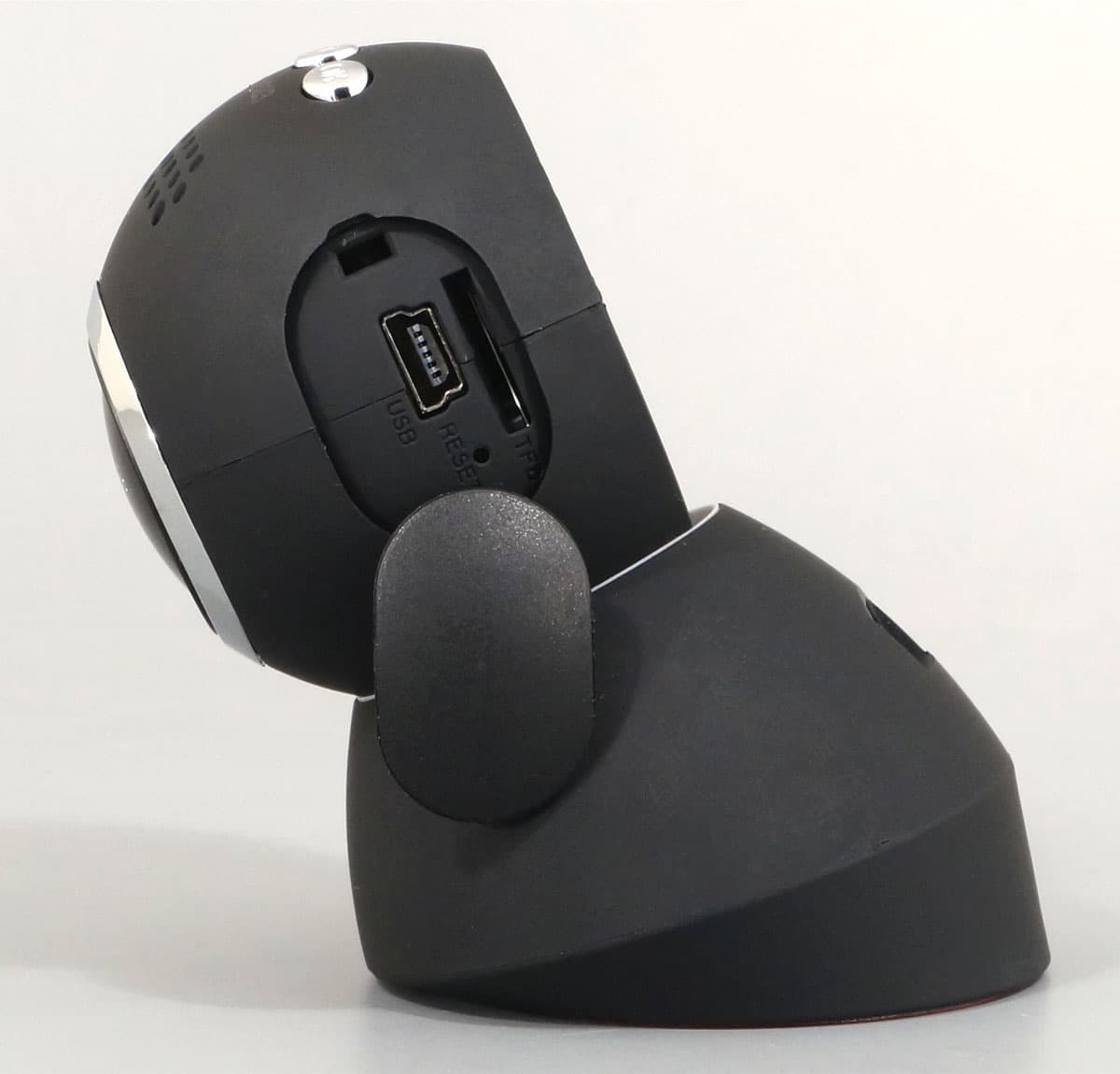 Блок камеры имеет вентиляционные отверстия, в рабочем положении они «смотрят» вниз. В подошве стационарной площадки расположен единственный разъем Mini-USB, он служит для подачи питания.