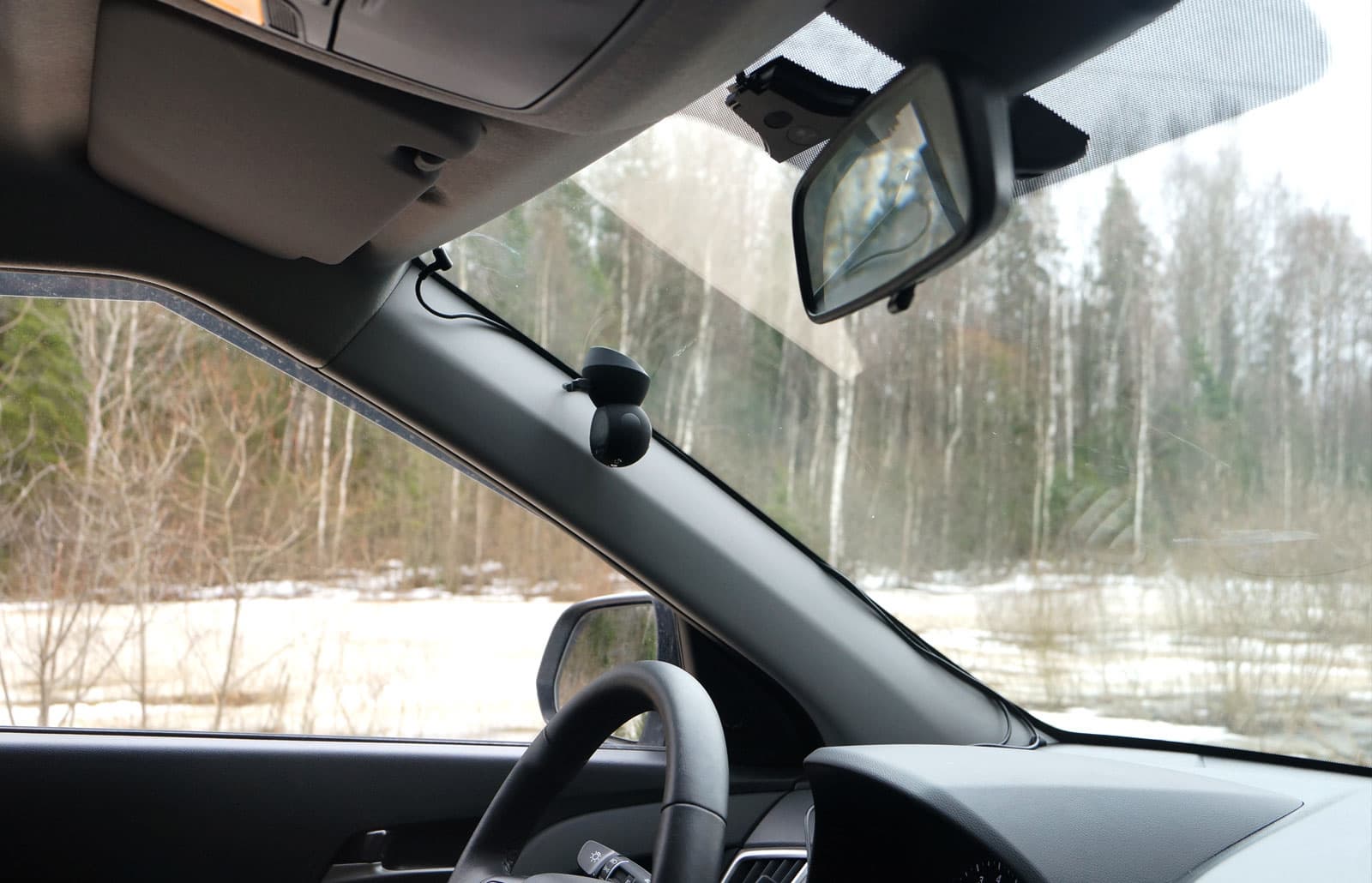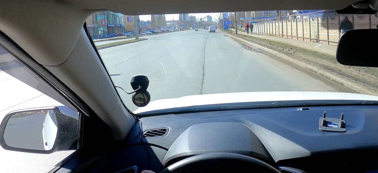 Тут пришлось хорошенько подумать. Где место этому регистратору? Понятно, что на лобовом стекле, а где именно? Под зеркалом заднего вида? Но в таком случае он будет перекрывать обзор, пусть и незначительно. В нижней части стекла? Но тогда камера получит странный ракурс, а кабель питания станет мешаться. Похоже, дело это сугубо индивидуальное. Так мы и поступили, индивидуально, разместив регистратор около левой передней стойки.