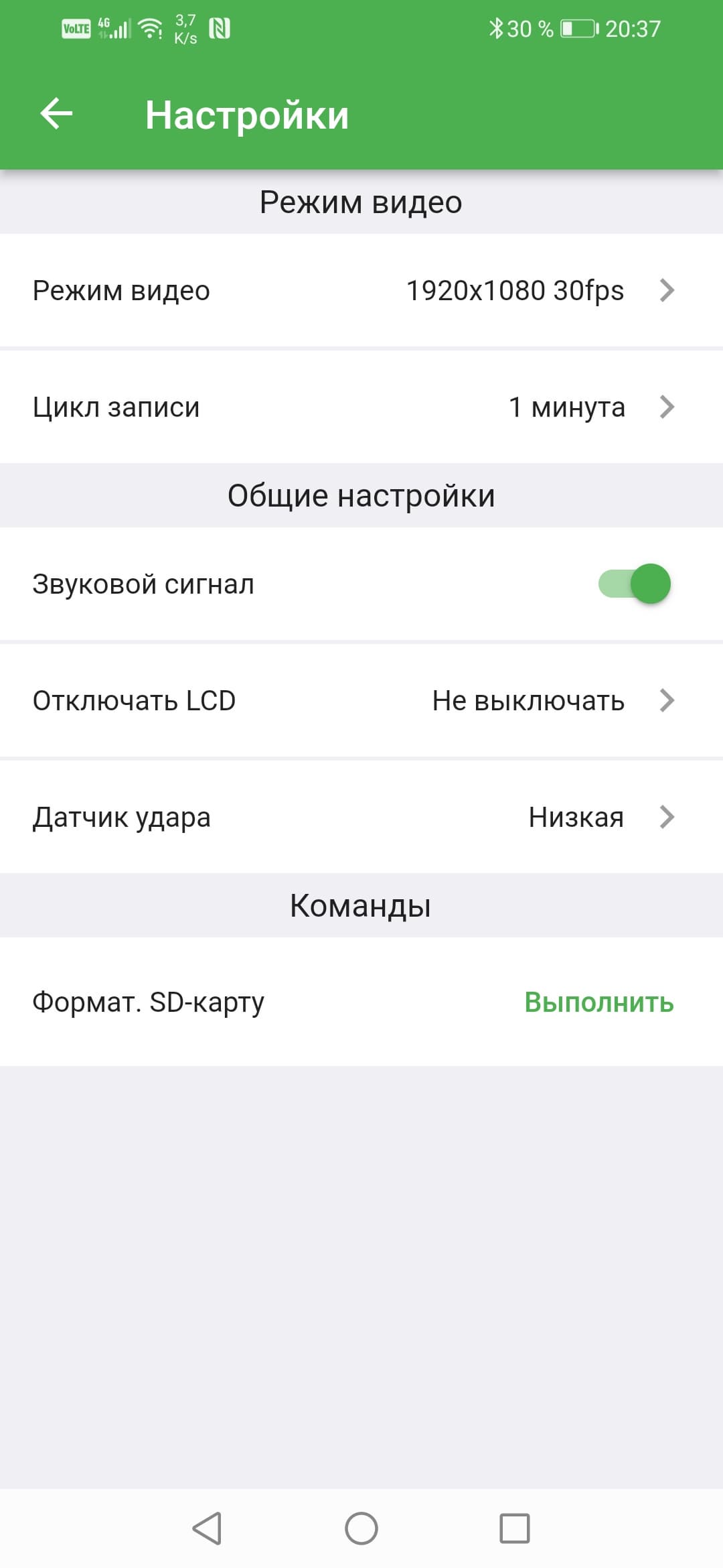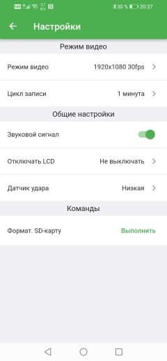 По всей видимости, разработчики еще не внесли необходимых изменений в приложение, которые бы увеличивали количество доступных настроек регистратора. Надеемся на скорое внесение этих параметров и обновление ПО.