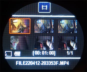 Просмотреть записи, сделанные регистратором, можно непосредственно на дисплее, для этого во встроенном ПО имеется файловый браузер, отображающий миниатюры архивных видеофайлов.