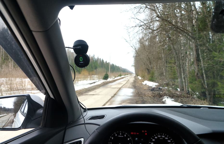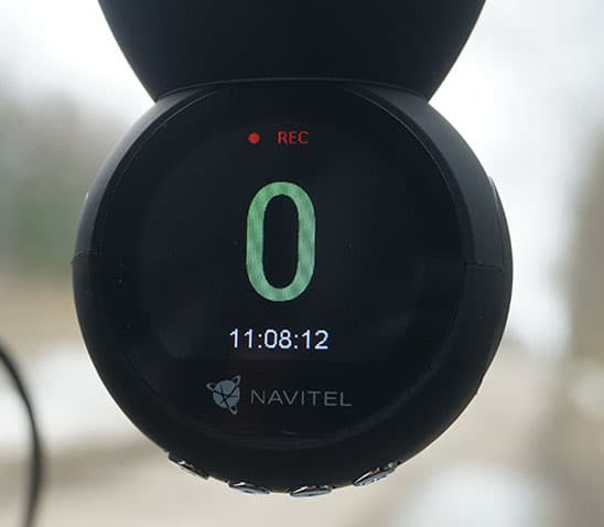 При включении устройства миниатюрный дисплей недолгое время отображает картинку с камеры, после чего переключается в режим цифрового спидометра. Это поведение можно отключить в настройках, но зачем? Цифровой спидометр, расположенный на уровне глаз, а не где-то под рулем — вещь изумительно полезная. Во-первых, этот спидометр не врет, в отличие от того, которым оснащен автомобиль. Ведь любой автомобильный спидометр завышает истинную скорость процентов этак на пять-семь, и чем выше скорость, тем больше расхождение. Во-вторых, для того, чтобы узнать текущую скорость, не нужно переводить взгляд с дороги вниз, на панель приборов. С некоторой привычкой можно даже не скашивать глаза вбок — крупные цифры легко идентифицируются периферийным зрением. В солнечную погоду дисплей может немного бликовать, но и это не мешает контролировать скорость.