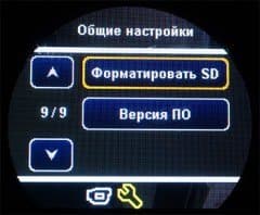 Остальные четыре кнопки, расположенные в ряд, отвечают за навигацию по меню, но не только. Например, кнопкой ОК можно остановить запись или начать ее, когда регистратор включен.
