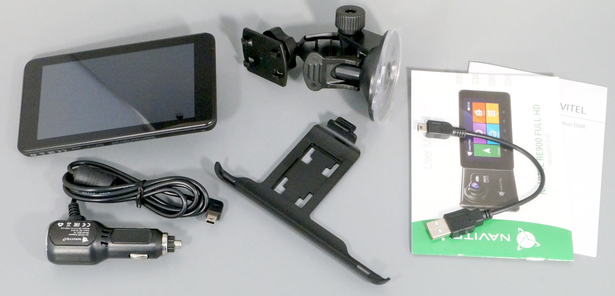 Навигатор комплектуется креплением с присоской диаметром 67 мм и удерживающим кронштейном-пластиной, а также автомобильным зарядным устройством, которое может работать от бортовой сети легкового и грузового автомобиля (DC 12/24 В) и обеспечивает устройство необходимыми 5 В 1500 мА.
