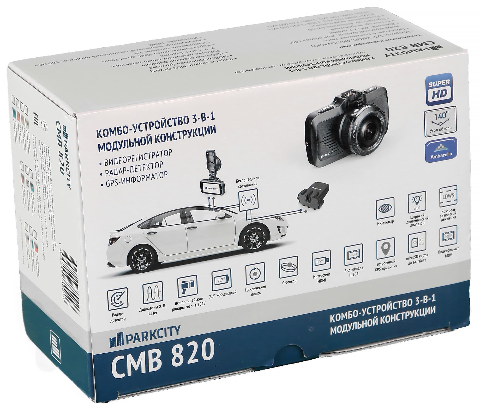 За все время существования на iXBT.com раздела OnRoad, ParkCity CMB 820 — первое устройство такого типа, попавшее к нам в руки. По сути, это все тот же «3 в 1» — SuperHD-видеорегистратор, радар-детектор и GPS-информер. Однако радар-детектор у этой модели физически вынесен в отдельный блок, пригодный для достаточно скрытной установки, а та часть, что помещается на лобовое стекло, выглядит абсолютно классическим видеорегистратором и никаких внешних признаков радар-детектора не имеет. Для дополнительной скрытности связь между блоками осуществляется беспроводным способом.