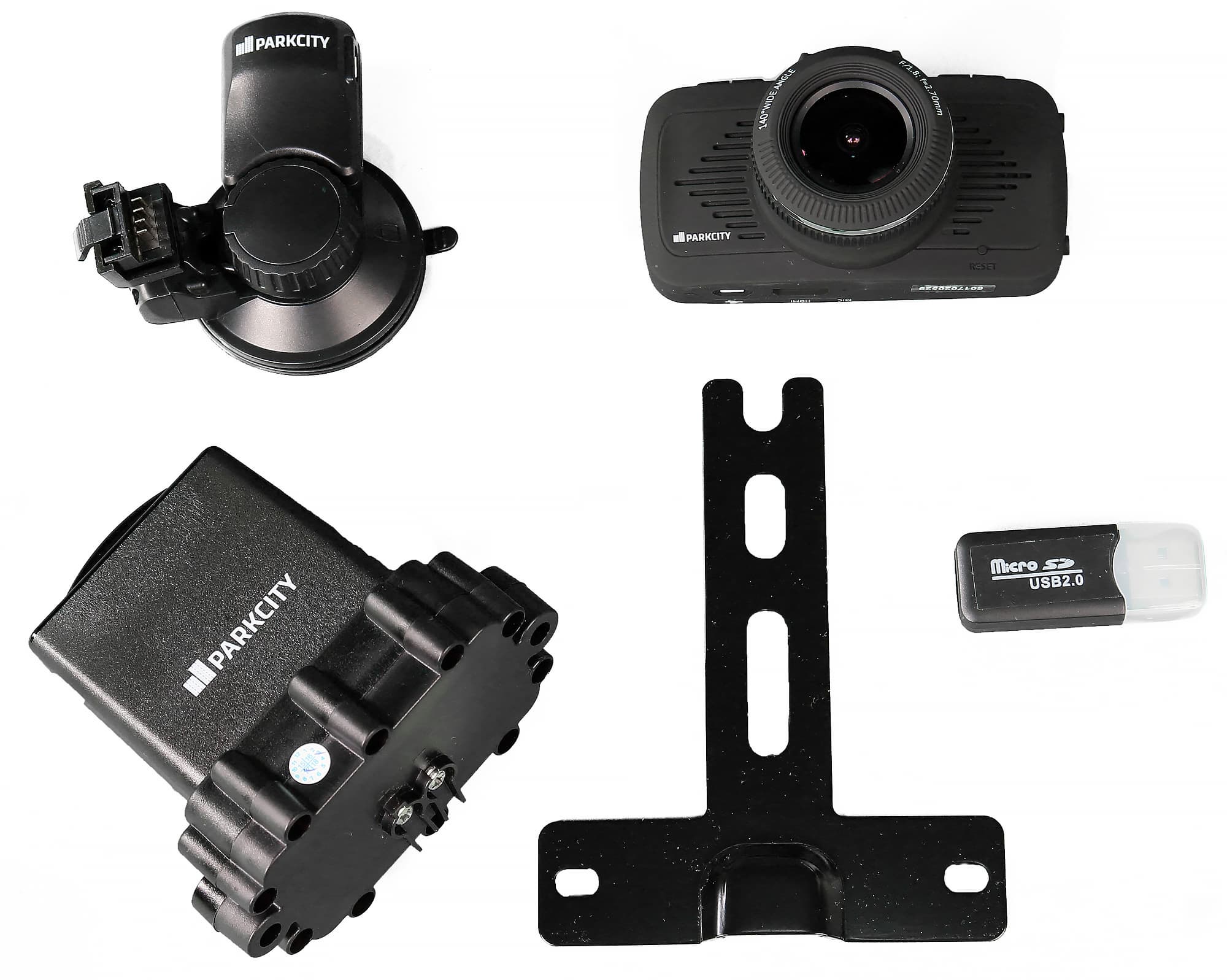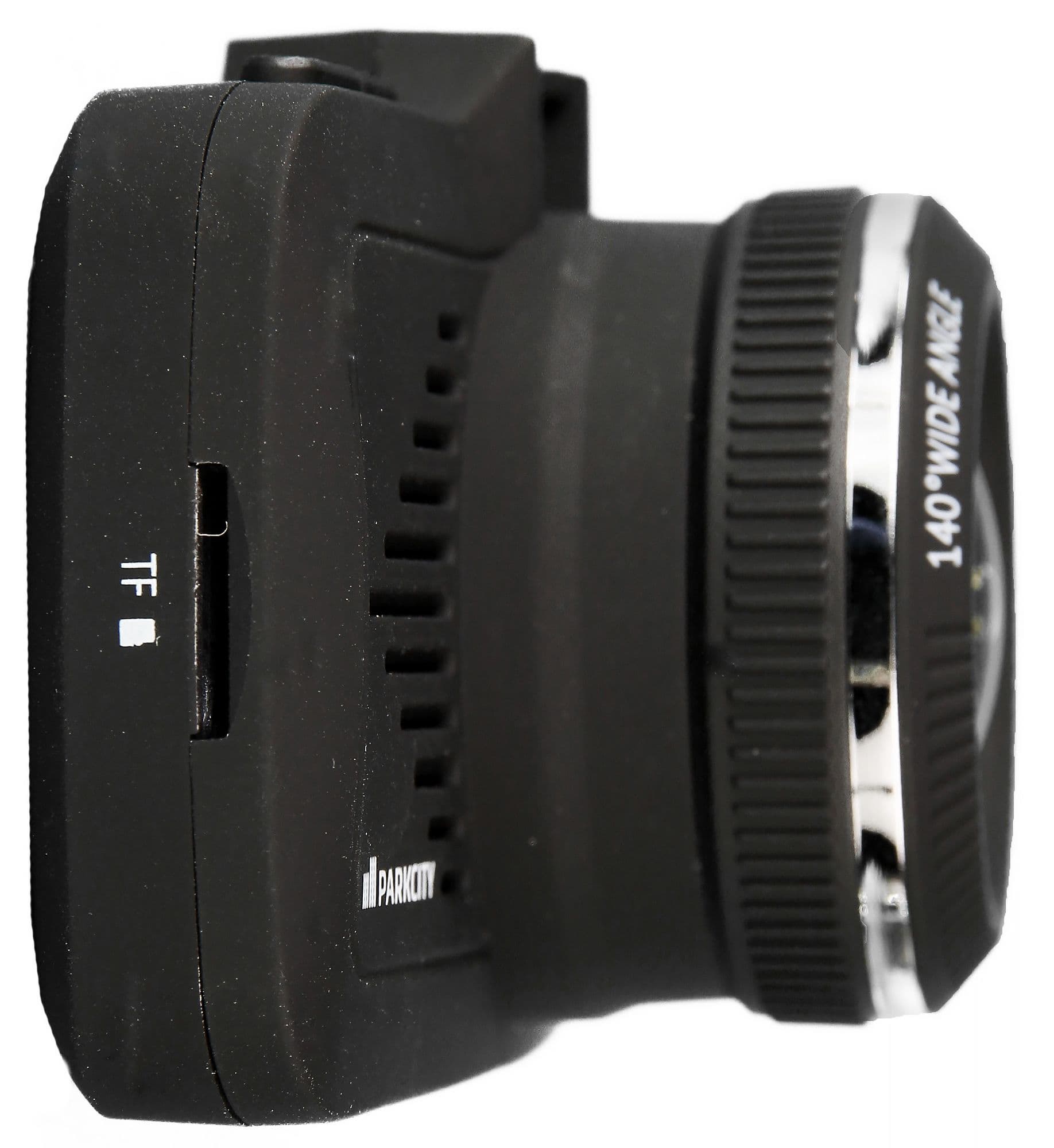 Основной блок ParkCity CMB 820 имеет вполне классический «видеорегистраторный» вид. Собственно, он не просто имеет такой вид, а похож как 2 капли воды на SuperHD-видеорегистратор Playme Back, который мы тестировали полтора года назад.