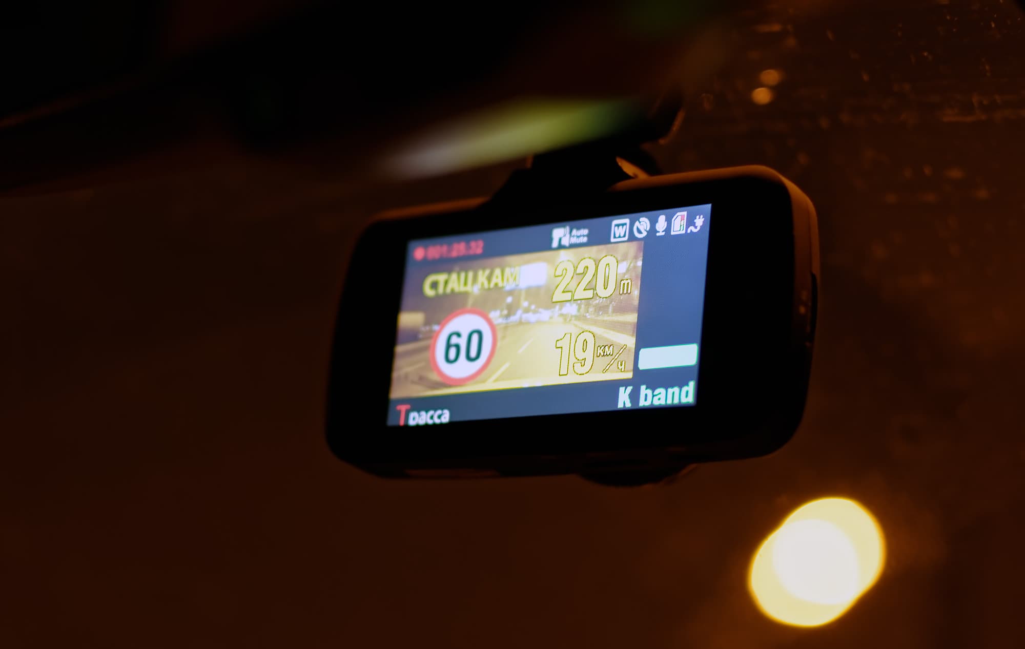 Кстати, не можем не отметить правильную реализацию функции гашения экрана: если выставить соответствующий параметр в меню, через определенное количество времени экран прибора погаснет — но в периоды срабатывания радар-детектора будет включаться для вывода соответствующих сообщений.