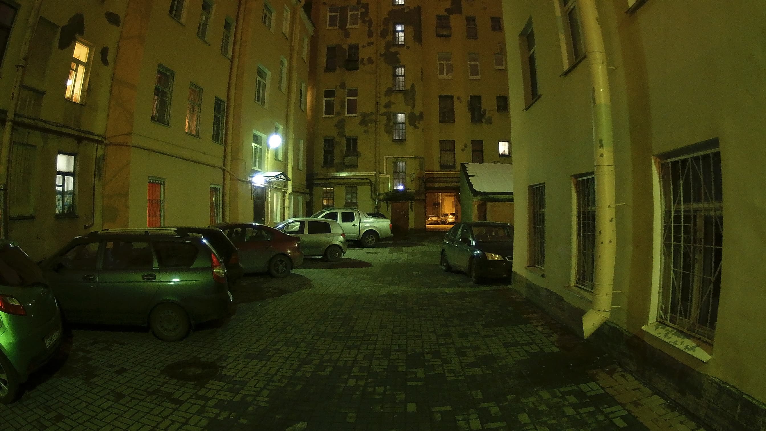 На ночном местами заметен шум — но это все-таки лучше, чем агрессивно съедающий детали шумодав. Цвета опять правильные, динамический диапазон не выдающийся, но неплохой. Появление в кадре вертикальных линий сразу же обнаружило достаточно сильные геометрические искажения, но для широкоугольных объективов это нормально.