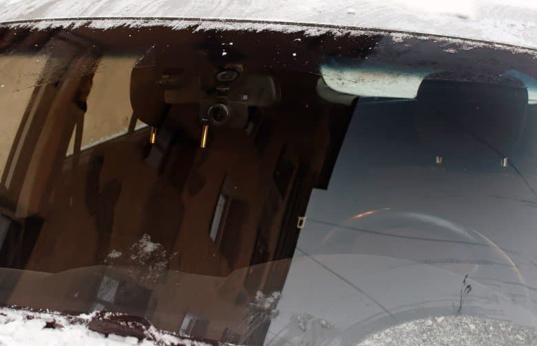 Видимость на стекле у этого прибора хорошая — он и сам немаленький, да и кронштейн миниатюрным не назовешь. Хотя сам «в глаз не лезет», за счет матового черного корпуса. Отделить основной блок от кронштейна, не сняв последний, как мы уже писали выше — довольно сложно: разъем тугой и подбираться к нему и его защелке неудобно. Ну а о том, чтобы снять, не нарушив настройку объектива — об этом вообще речи не идет.