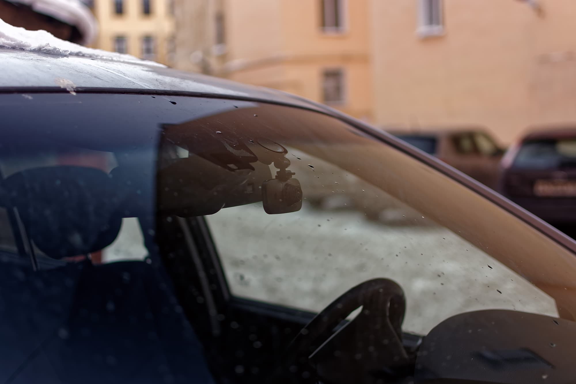 Если хочется установить видеорегистратор повыше, то приходится делать это чуть сбоку от крепления зеркала. И вот тут-то снова выясняется, что если хочется сделать это слева — нужно делать достаточно большой отступ, потому что справа у кронштейна находится штекер питания (причем обычный, не Г-образный), а если справа — то еще больше, потому что именно в этом секторе проворачивается ручка-активатор присоски. Учитывая то, что штекер питания торчит вправо, нам кажется, что наиболее близким к идеалу будет расположение прибора справа от крепления зеркала заднего вида.