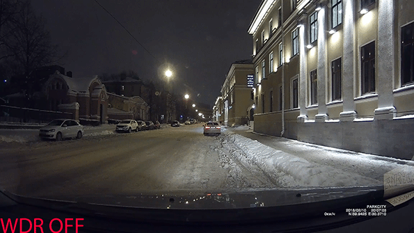 Тестируемый видеорегистратор поддерживает специальный режим работы, призванный улучшить качество картинки за счет расширения динамического диапазона — WDR (Wide Dynamic Range, расширенный динамический диапазон). Мы протестировали качество картинки с ним и без него, днем и ночью.