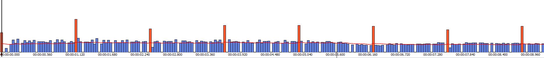 Битрейт в записи распределяется по ключевым (I) и промежуточным (P) кадрам. Двунаправленные (B) кадры в потоке отсутствуют.