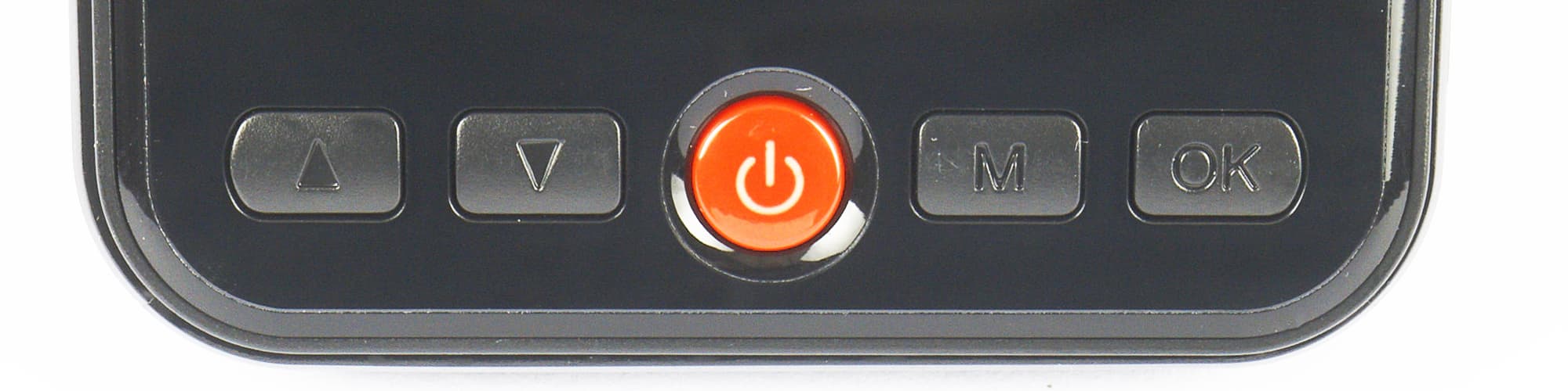 Большая красная кнопка включает и отключает дисплей. Справа от нее расположены кнопки вызова меню и подтверждения выбора, а слева — стрелочные кнопки, обеспечивающие навигацию по интерфейсу.