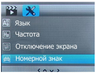 | Номерной знак | Включение/выключение штампа номерного знака на видеозаписи и ввод номера автомобиля |