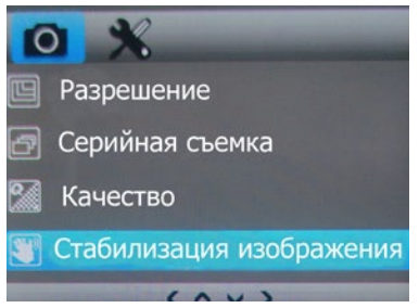 | Стабилизация изображения | вкл., выкл. | Включение/выключение защиты от сотрясений |