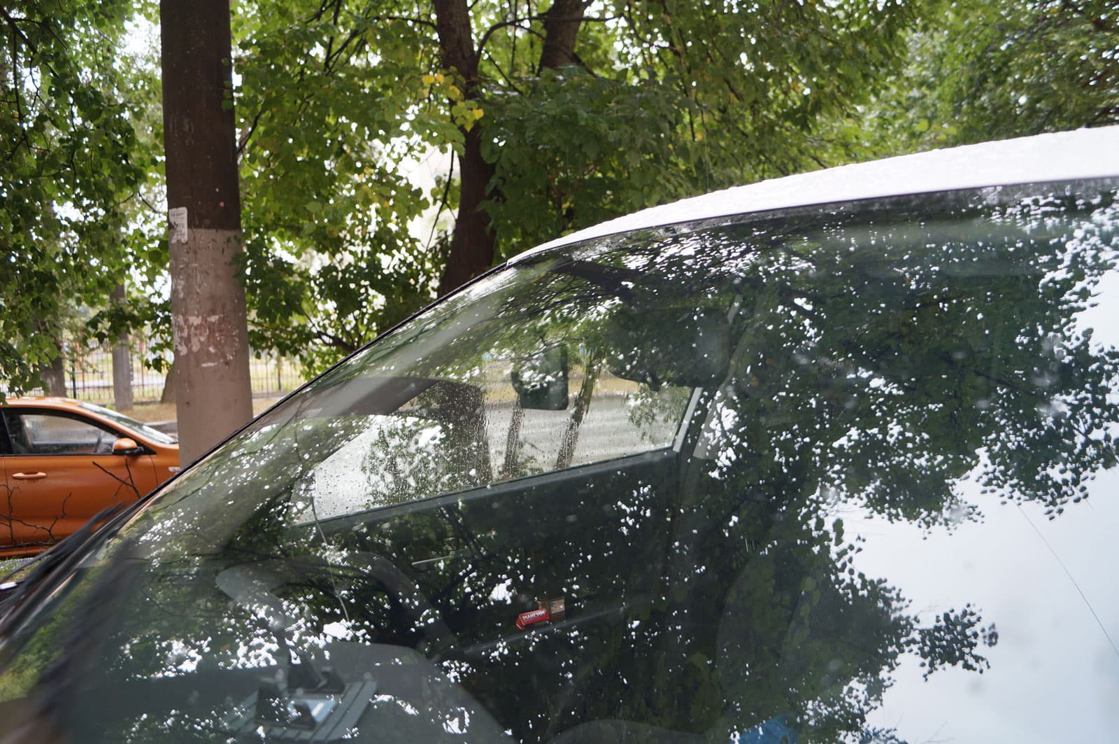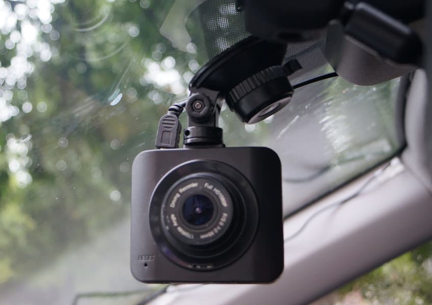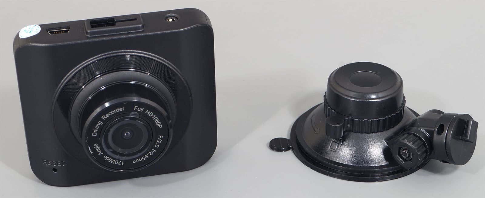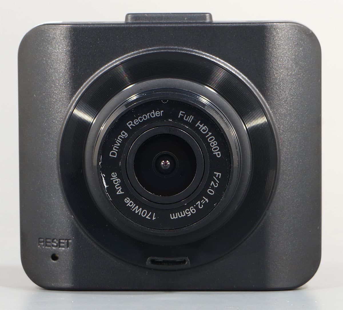 Регистратор, установленный внутри автомобиля, практически незаметен снаружи. Матовый черный корпус регистратора не дает бликов, а белый текст, напечатанный по периметру объектива, слишком мелок, чтобы «выдать» прибор.