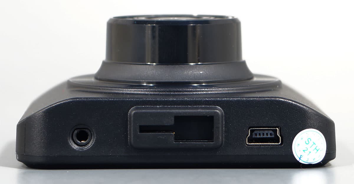 На верхней части корпуса расположено гнездо для крепления кронштейна с присоской, справа от него — разъем Mini-USB, через который регистратор получает питание. Этот разъем может играть и другие роли, но об этом позже.