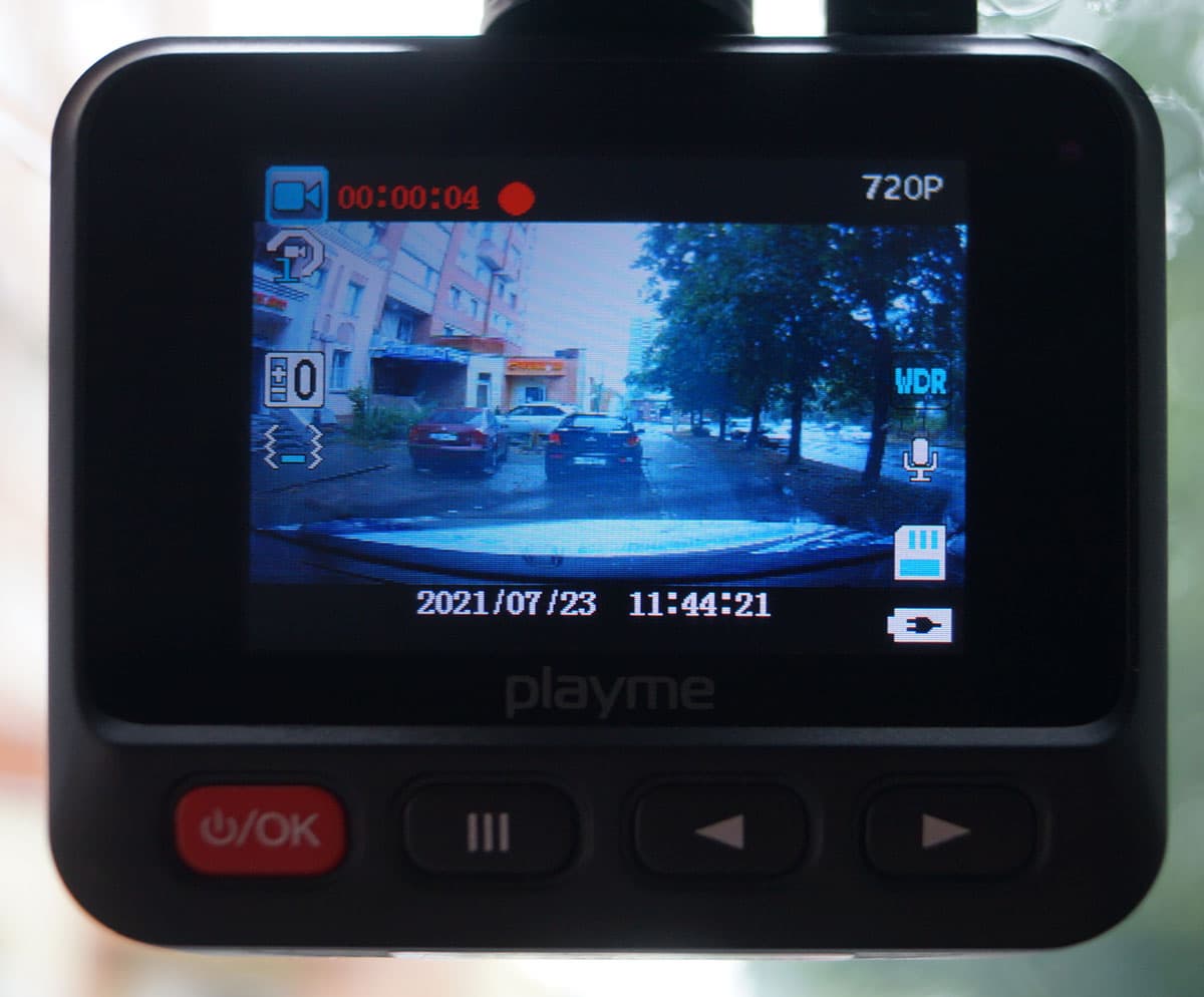 Ярким и сверхчетким этот дисплей не назовешь. Оно и понятно, в экстремально дешевом регистраторе не может быть топового экрана с уникальными характеристиками. Показывает — и ладно.