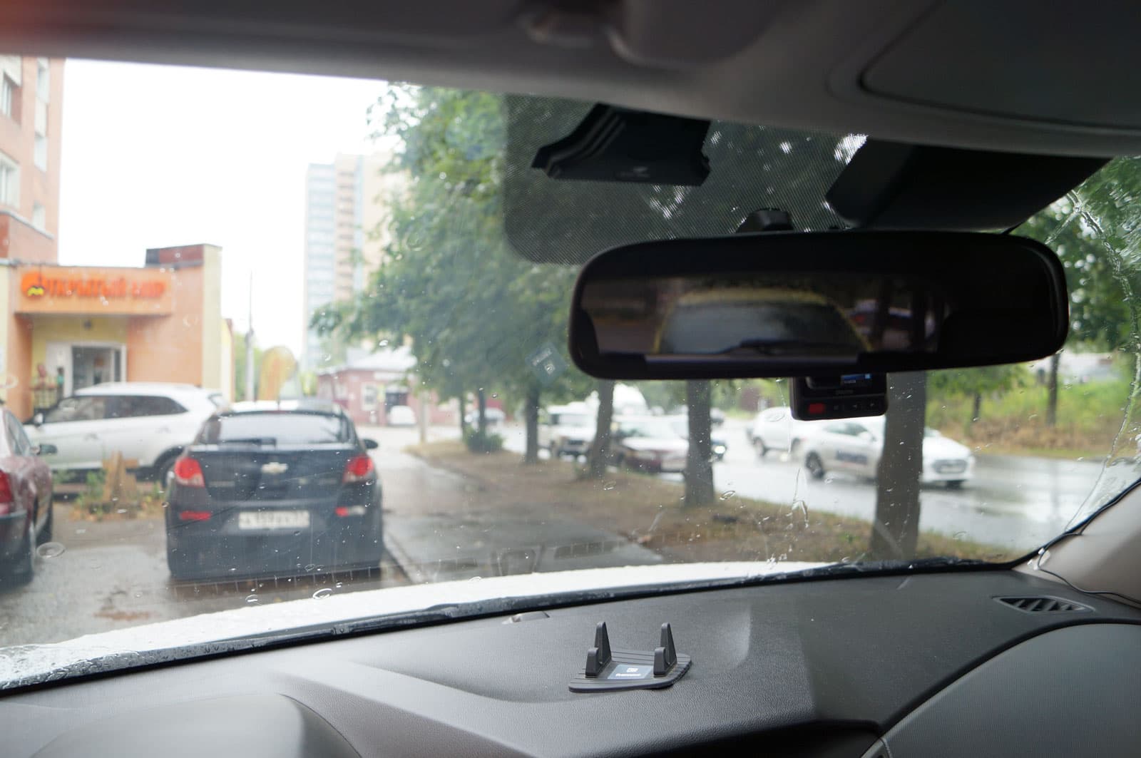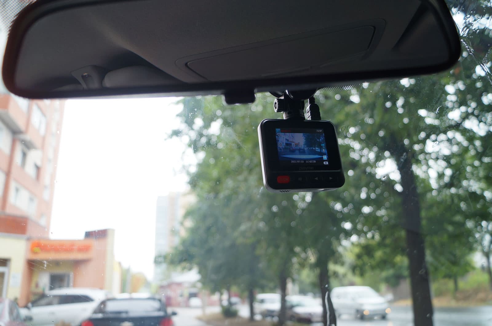 Лучшее место для крепления автомобильного регистратора — за зеркалом заднего вида. Отсюда устройство получает оптимальный угол обзора для записи происходящего. В данном же случае экран регистратора не дает никакой полезной информации, а значит, его с легкостью можно спрятать за зеркалом, чтоб не перекрывался обзор. Впрочем, если пользователь желает использовать поворотную площадку регистратора, чтобы записывать редкие (надеемся) моменты общения с инспекторами ГИБДД, то аппарат имеет смысл сдвинуть влево. Чтобы в нужное время легким движением руки повернуть регистратор влево, направив объектив на окно.