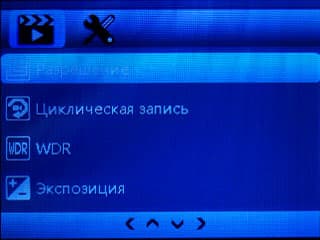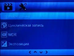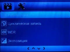 Настройки аппарата разбиты на две категории: видео и системные. Общее количество настроек невелико, но это даже очень неплохо. Это не видеокамера, а регистратор. Тут вообще желательна полная автоматика. Такая, которая исключит даже экспокоррекцию. Ведь незнающий пользователь — а таких полно — возьмет и выкрутит параметр на максимум. Потом жди звонков в техподдержку: почему картинка такая вся белая-белая?
