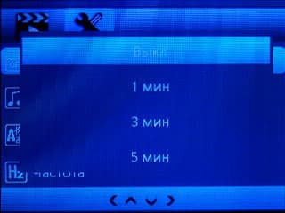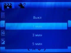 | Отключение экрана | выкл., 10 с, 15 с, 30 с, 1 мин., 3 мин., 5 мин. |